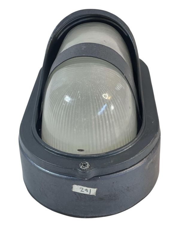 Original Galactica bridge wall light used in the science fiction television series 'Battlestar Galactica' (2004 - 2009) where, when an old enemy, the Cylons, resurface and obliterate the 12 colonies, the crew of the aged Galactica protect a small civilian fleet - the last of humanity - as they journey toward the fabled 13th colony, Earth.
