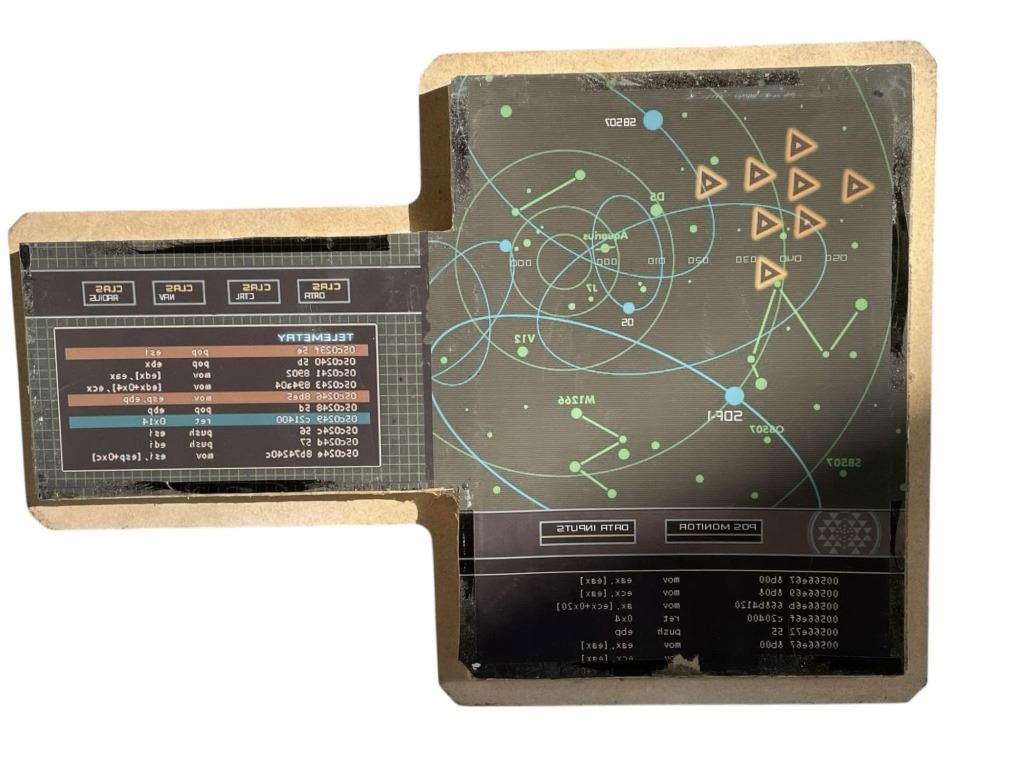 Original Galactica telemetry control panel used in the science fiction television series 'Battlestar Galactica' (2004 - 2009) where, when an old enemy, the Cylons, resurface and obliterate the 12 colonies, the crew of the aged Galactica protect a small civilian fleet - the last of humanity - as they journey toward the fabled 13th colony, Earth.