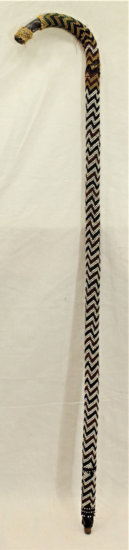 Interesting arch top cane, fully beaded using early beads in a zig-zag serrated design. An uncommon beaded item, with minor bead loss.
