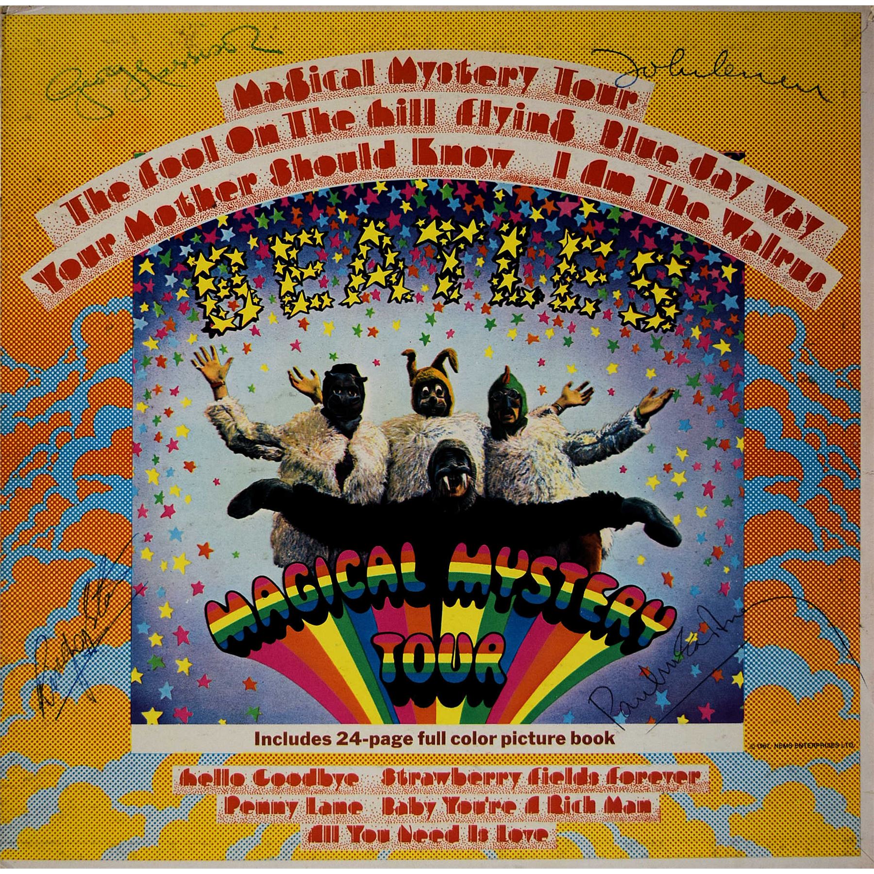 Beatles 1967 Magical Mystery Tour signed album. Signed: John Lennon, Ringo Starr, Paul McCartney & George Harrison.