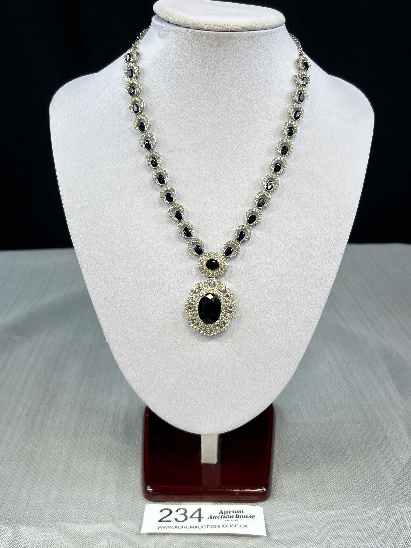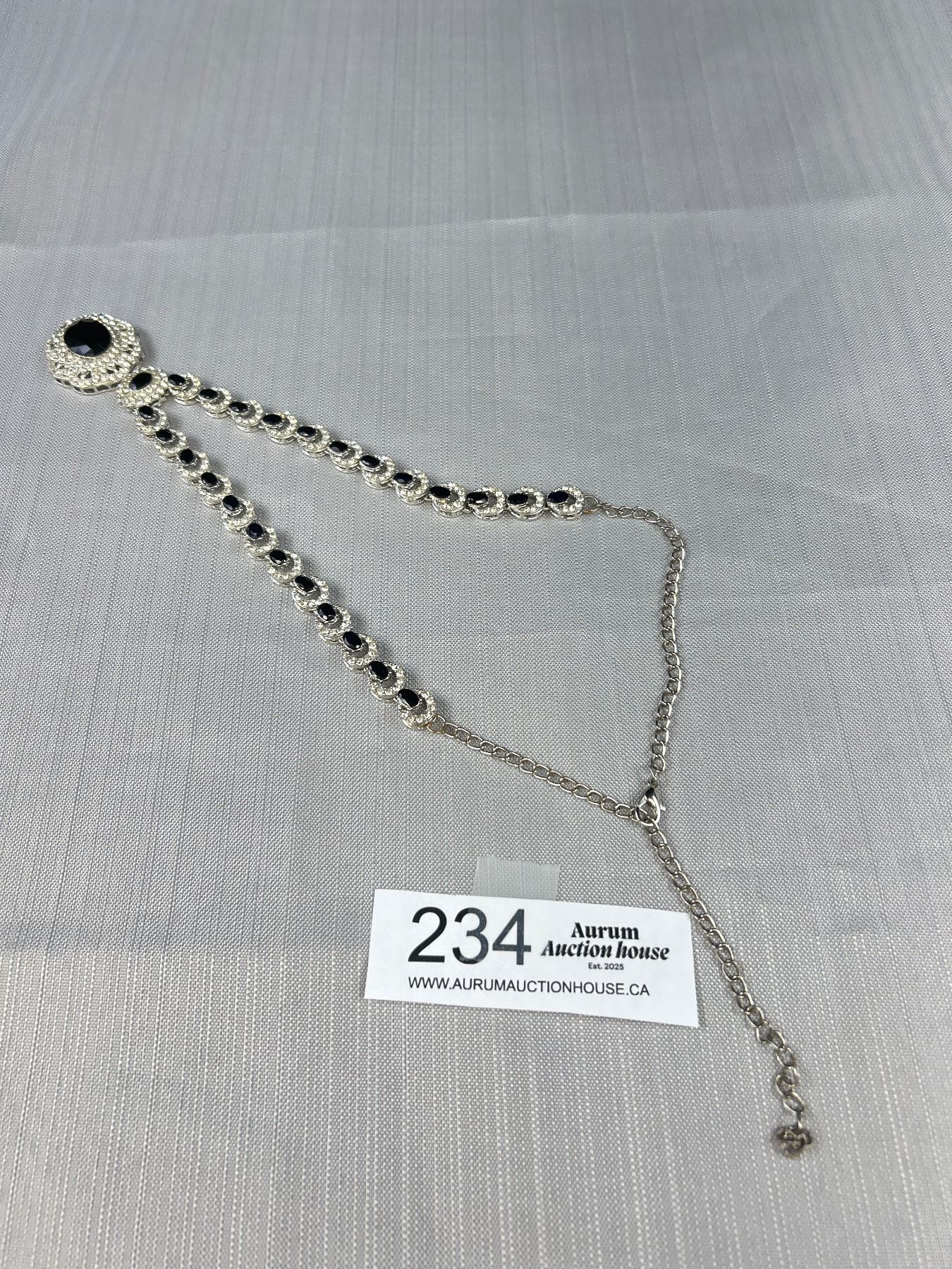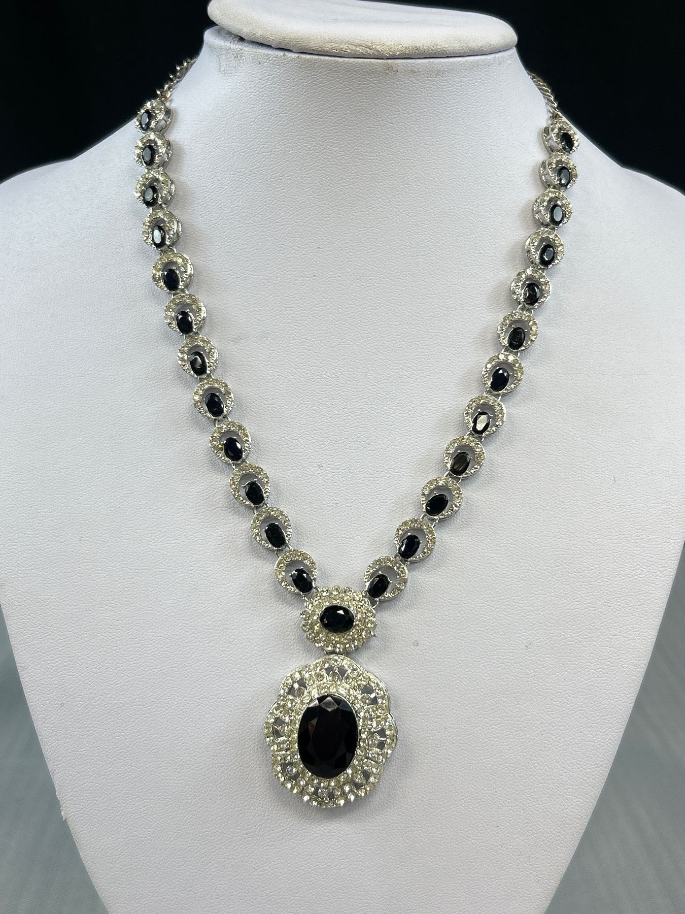 Beautiful Black Crystal + Clear Rhinestones Necklace