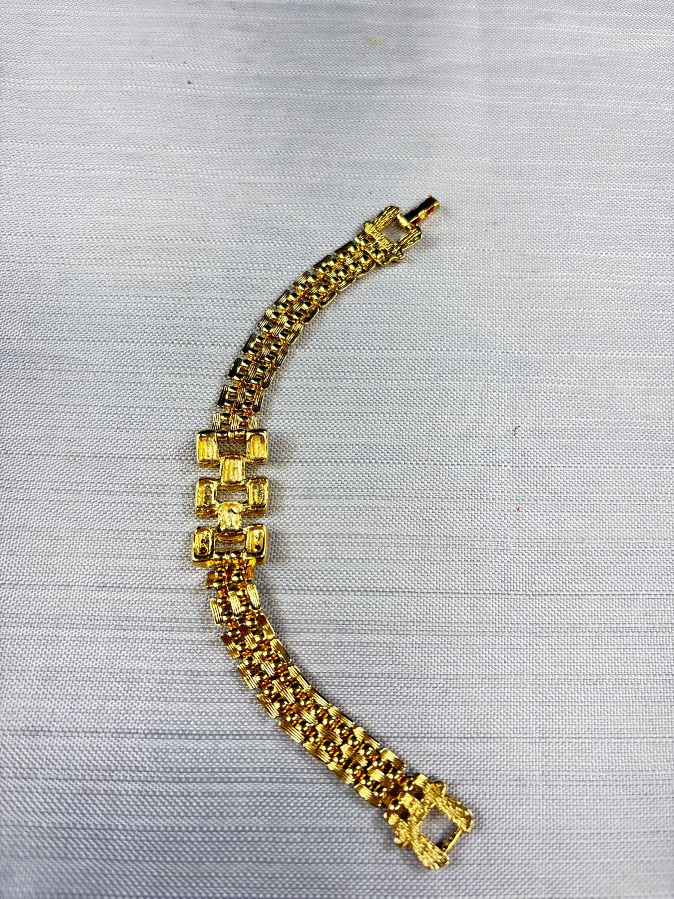 Beautiful Gold Plated Bracelet w/ Stones 7 Inches Length Unmarked