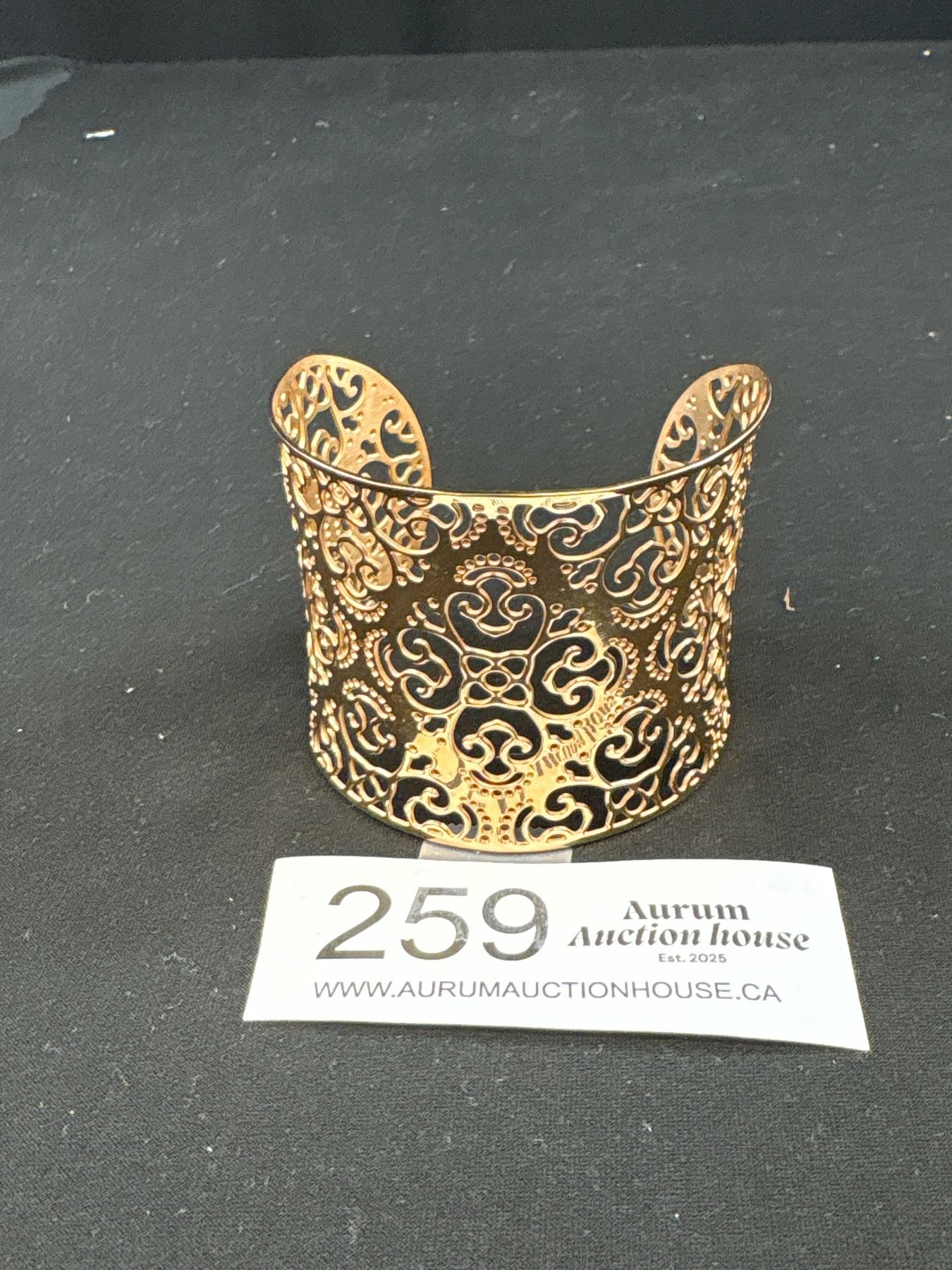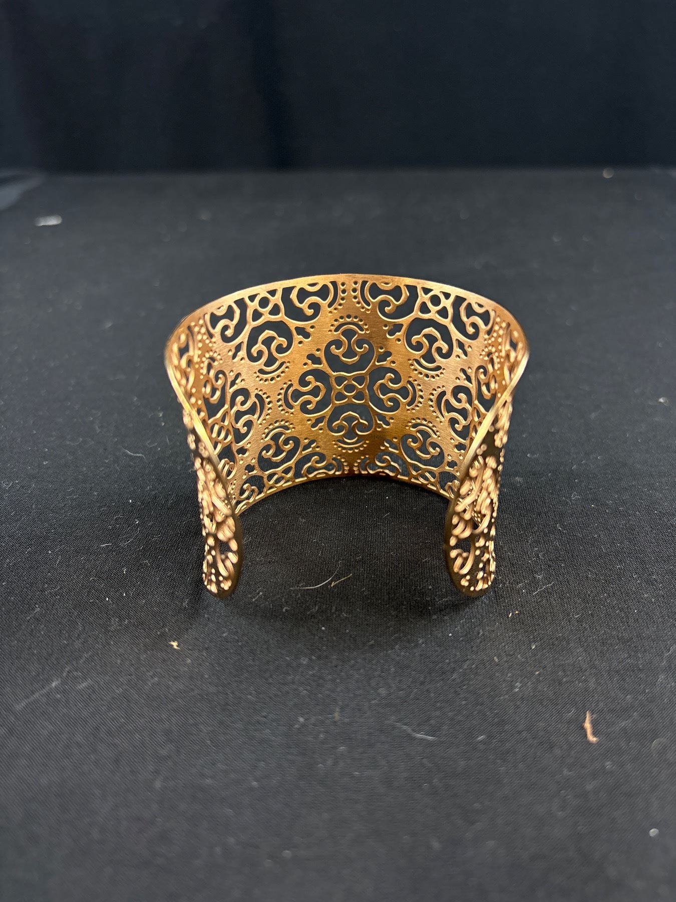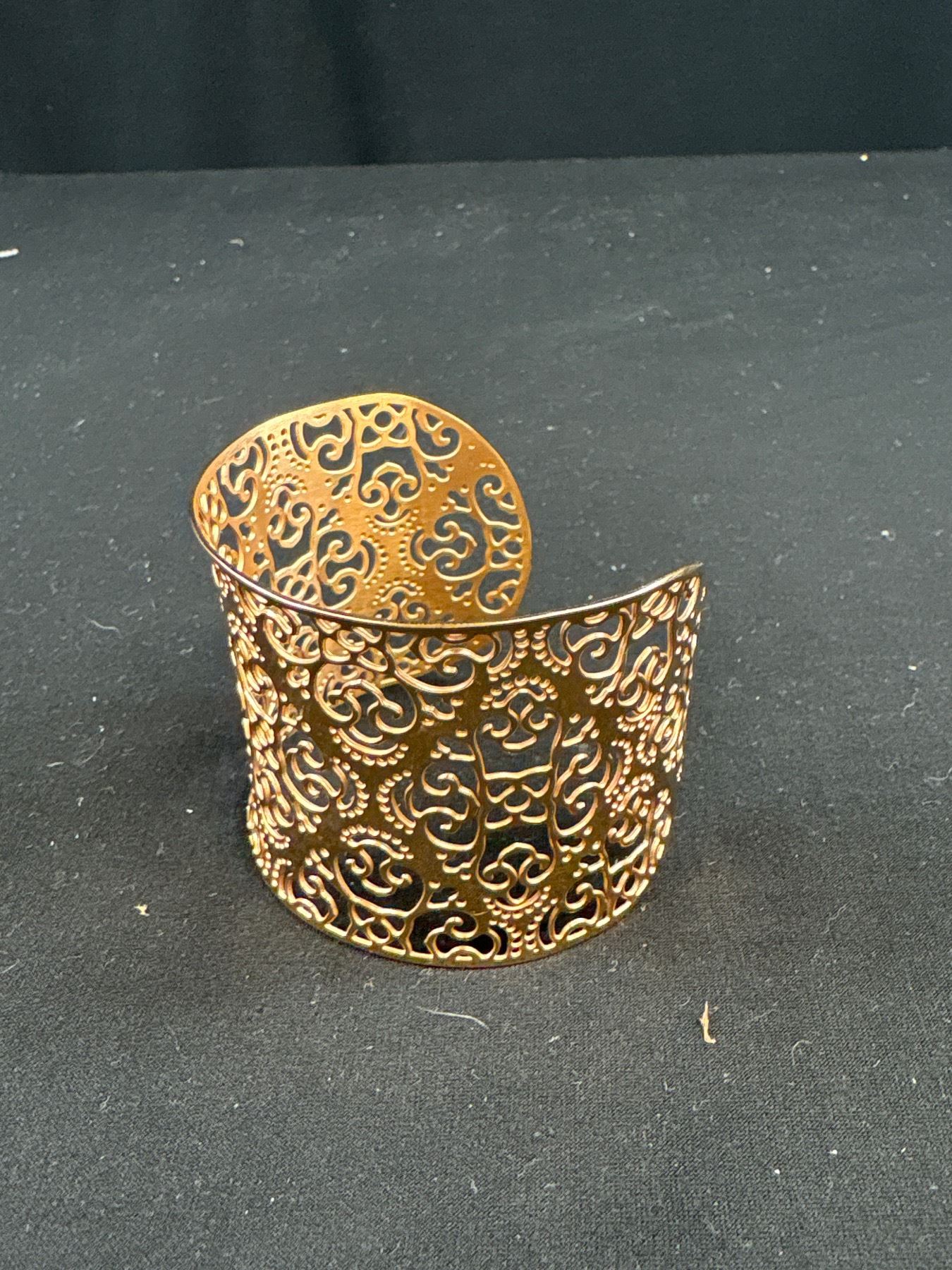 Beautiful Gold Plated Filigree Design Open Cuff Bangle, Unmarked