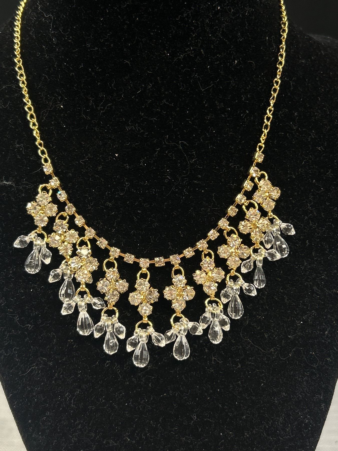 Beautiful Gold w/ Rhinestones and Tassels Necklace