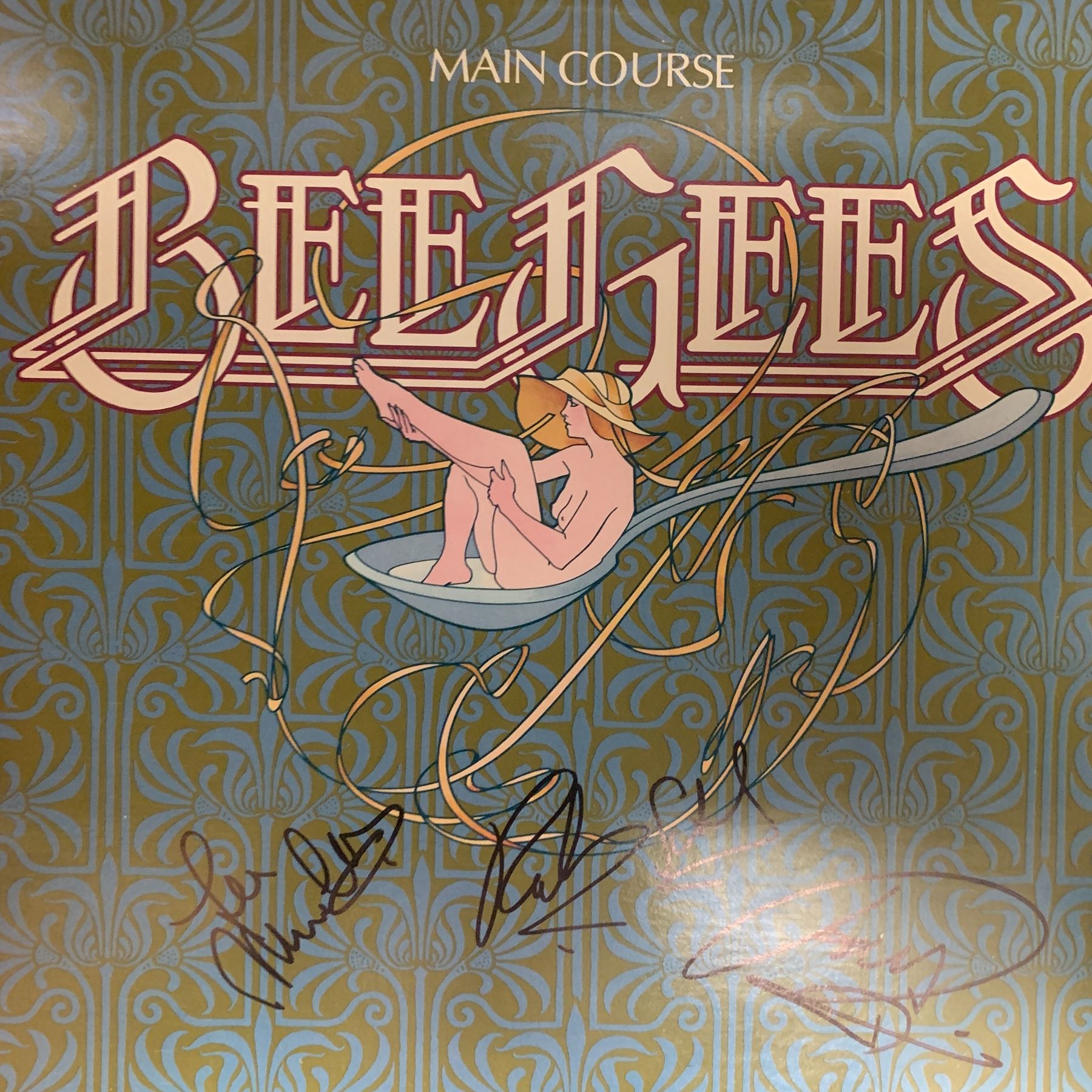 Bee Gees signed Main course album autographed by Barry Gibb, Robin Gibb and Maurice Gibb