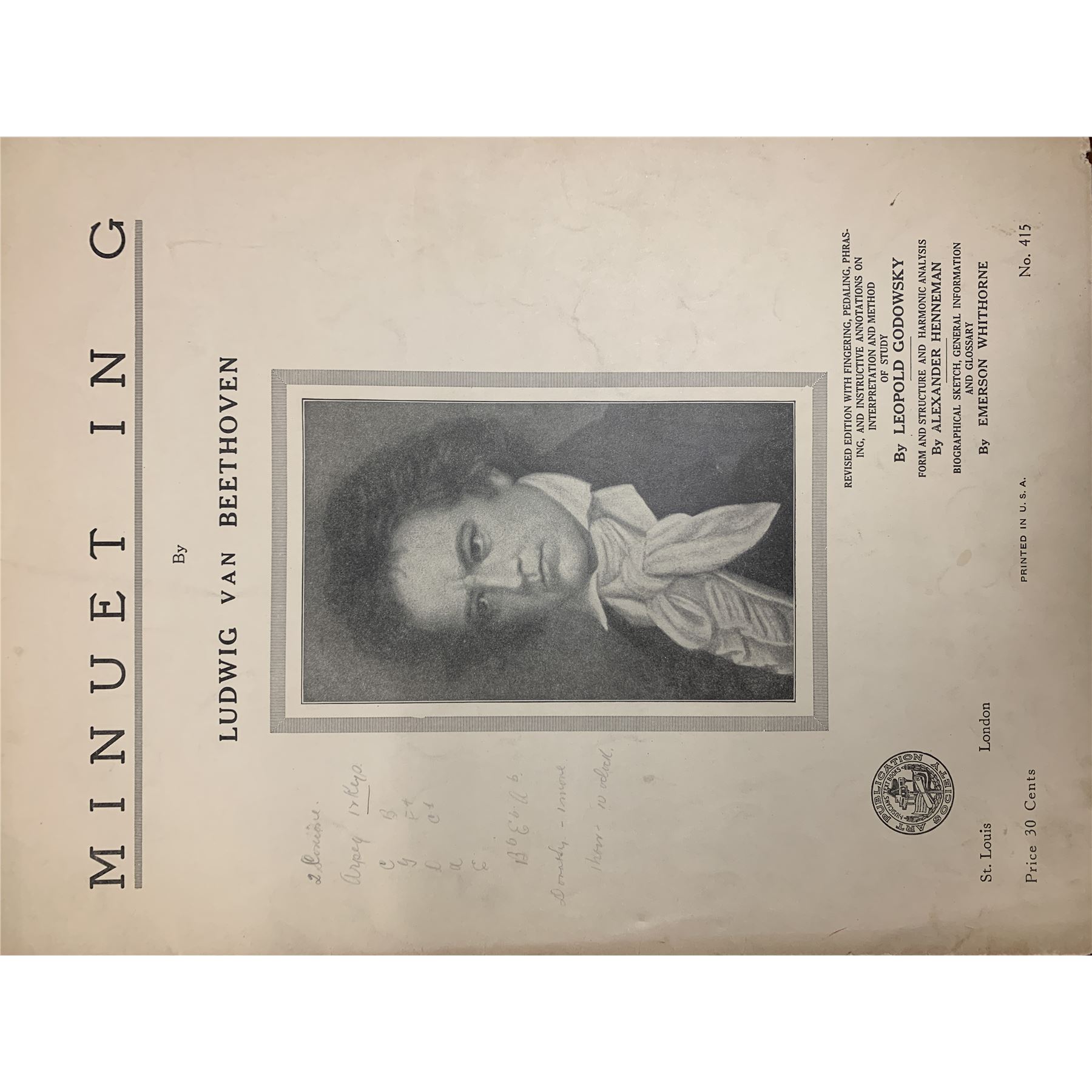 Beethoven Minuet In G unsigned sheet music. 9x12 inches