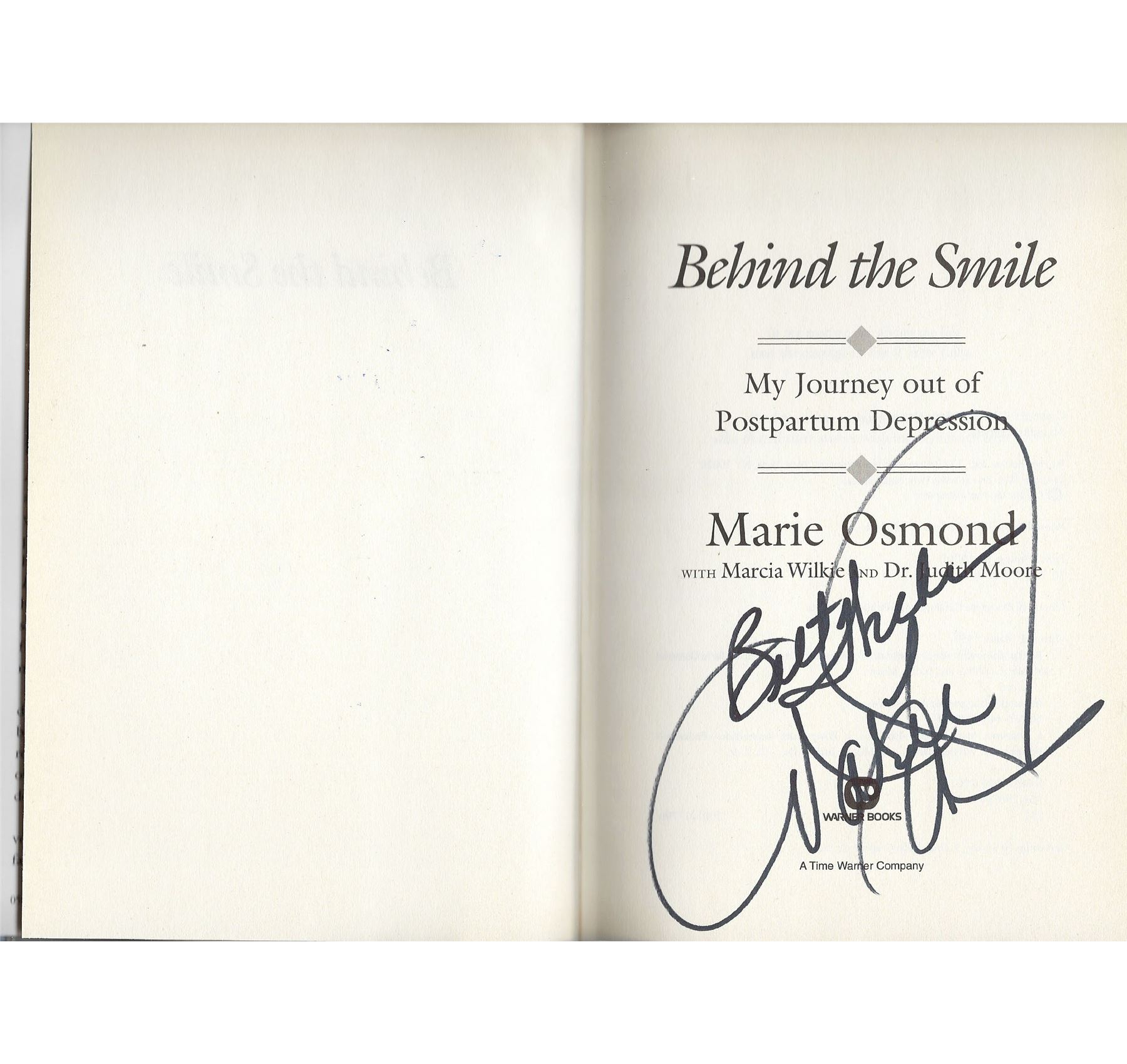 Behind the Smile: My Journey Out of Postpartum Depression signed photo autographed by Marie Osmond