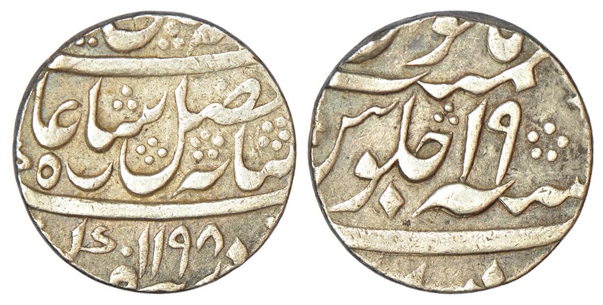 Bengal Presidency, Murshidabad (Calcutta) mint, silver rupee, in the name of Shah Alam II, AH 1198/RY 19, Stevens EIC 2.174; PR 142, 11.58g.