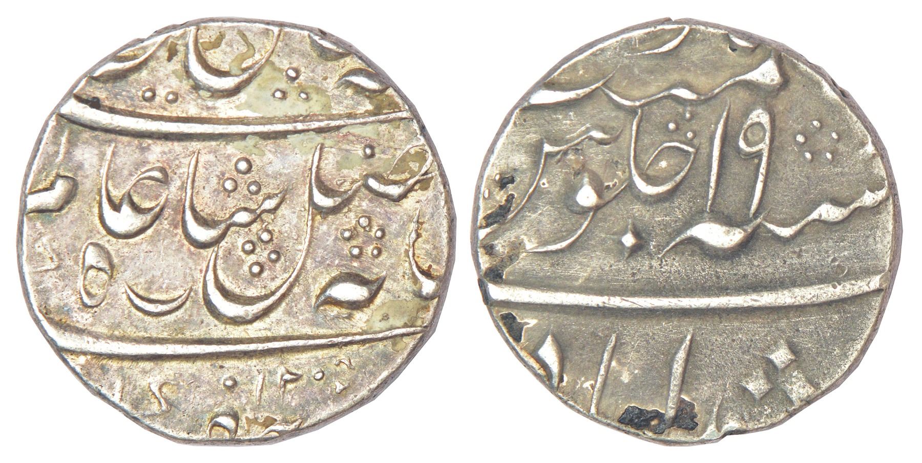 Bengal Presidency, Murshidabad mint, silver rupee, in the name of Shah Alam II, AH 1205/RY 19, crescent mintmark on obverse, partly machine struck, Stevens EIC 2.181, 11.51g.