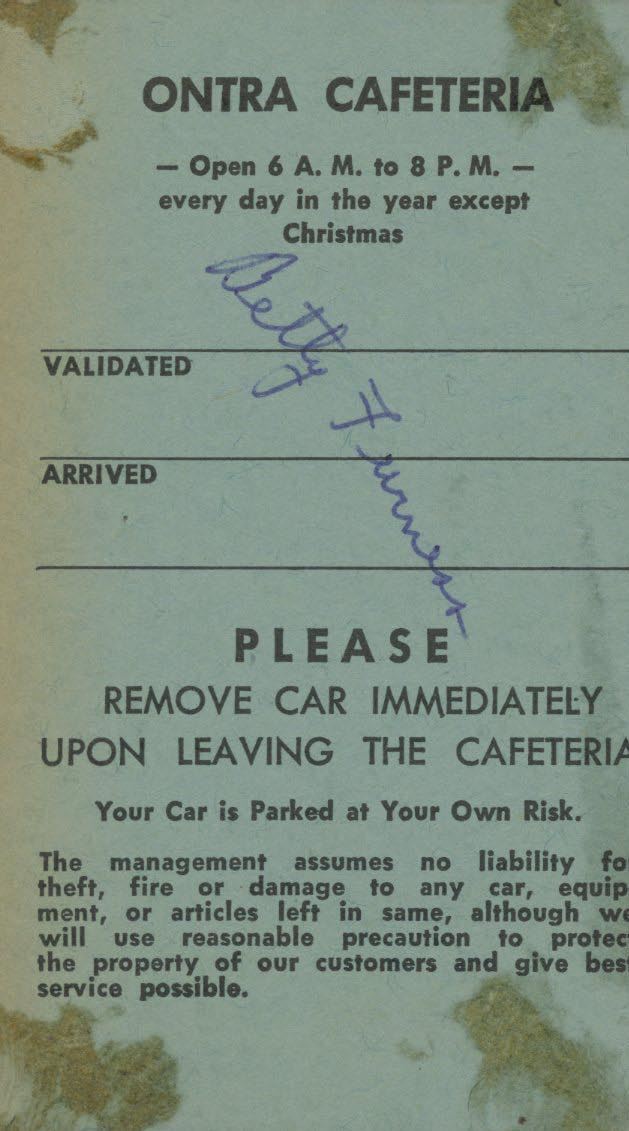 Betty Furness signed valet ticket
