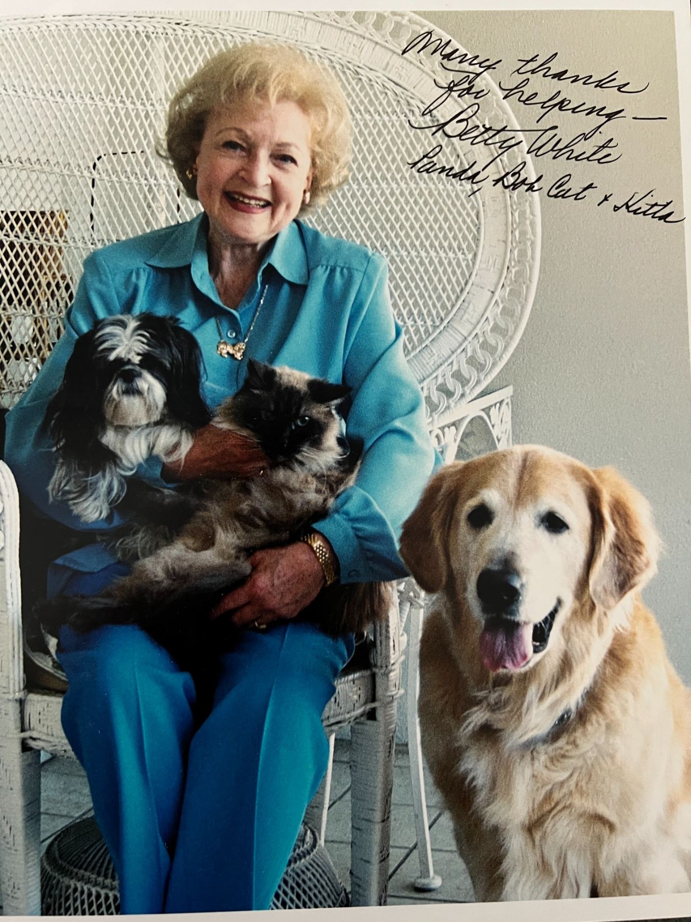 Betty White photo autographed by Betty White and her pets. 8x10 inches