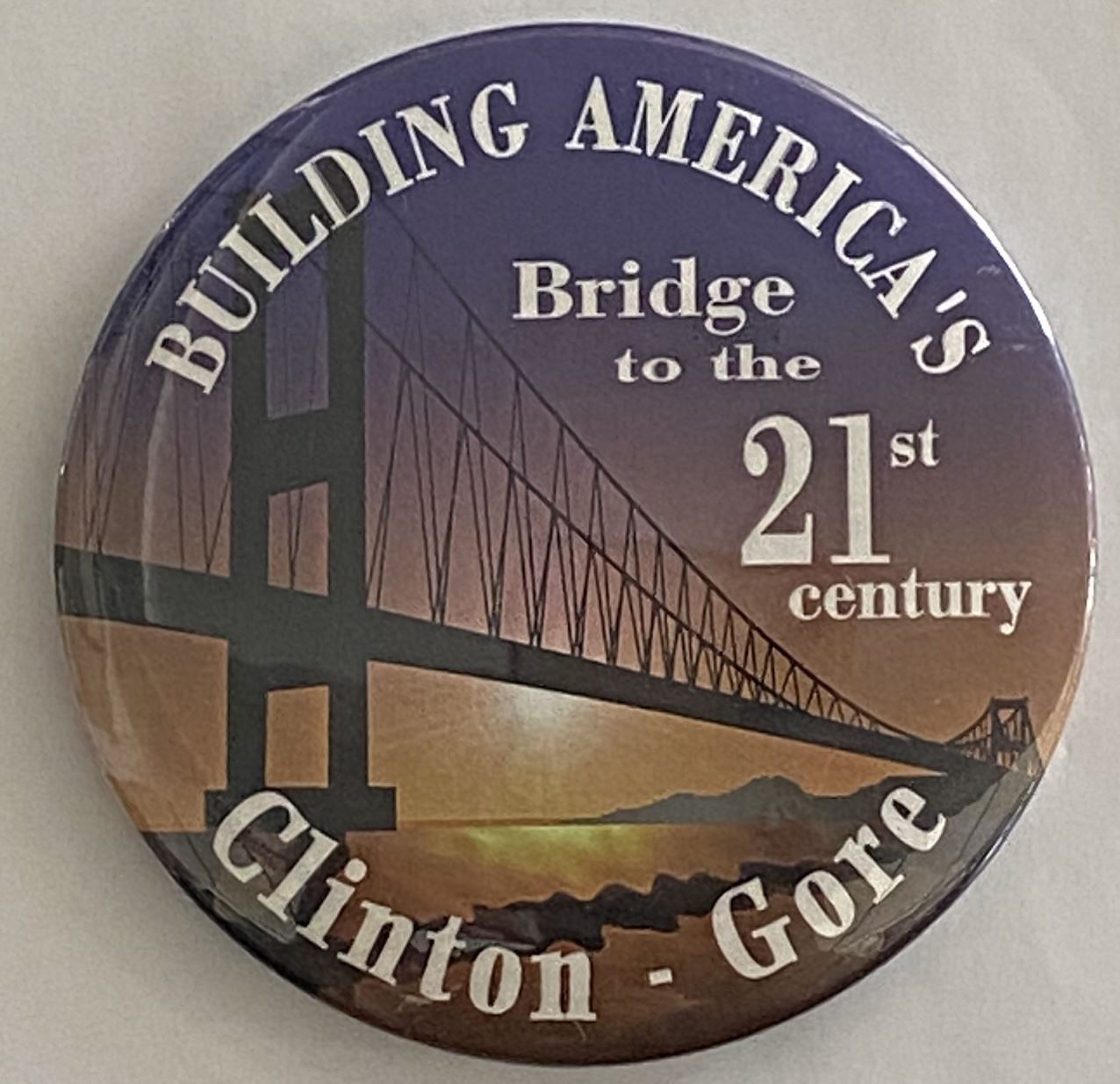 Bill Clinton- Al Gore 1996 political pin. Building America's Bridge to 21st Century. 3 inch