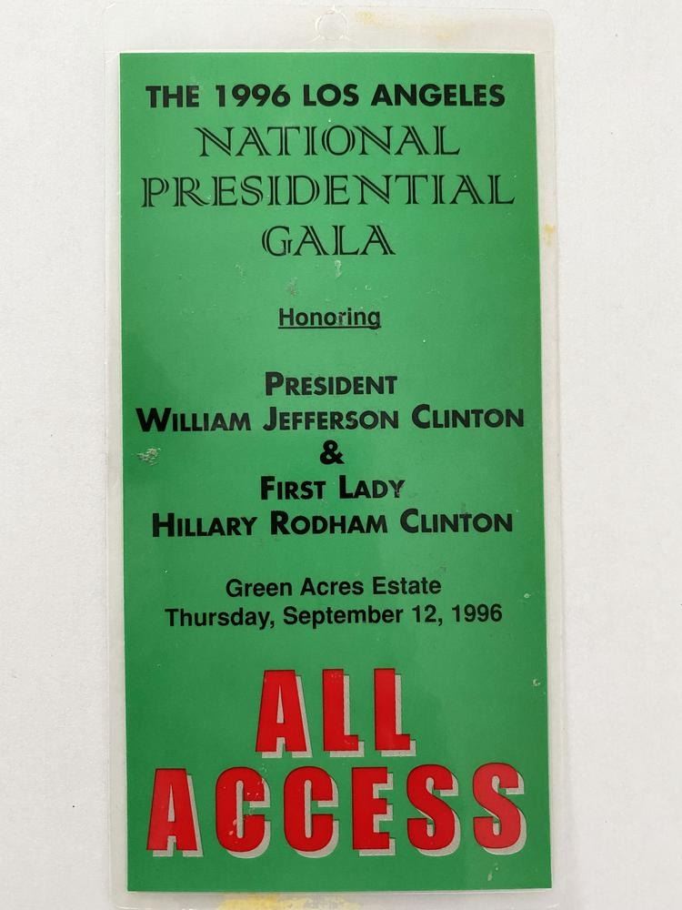 Bill & Hilary Clinton National Presidential Gala All Access Pass – Thursday September 12th 1996