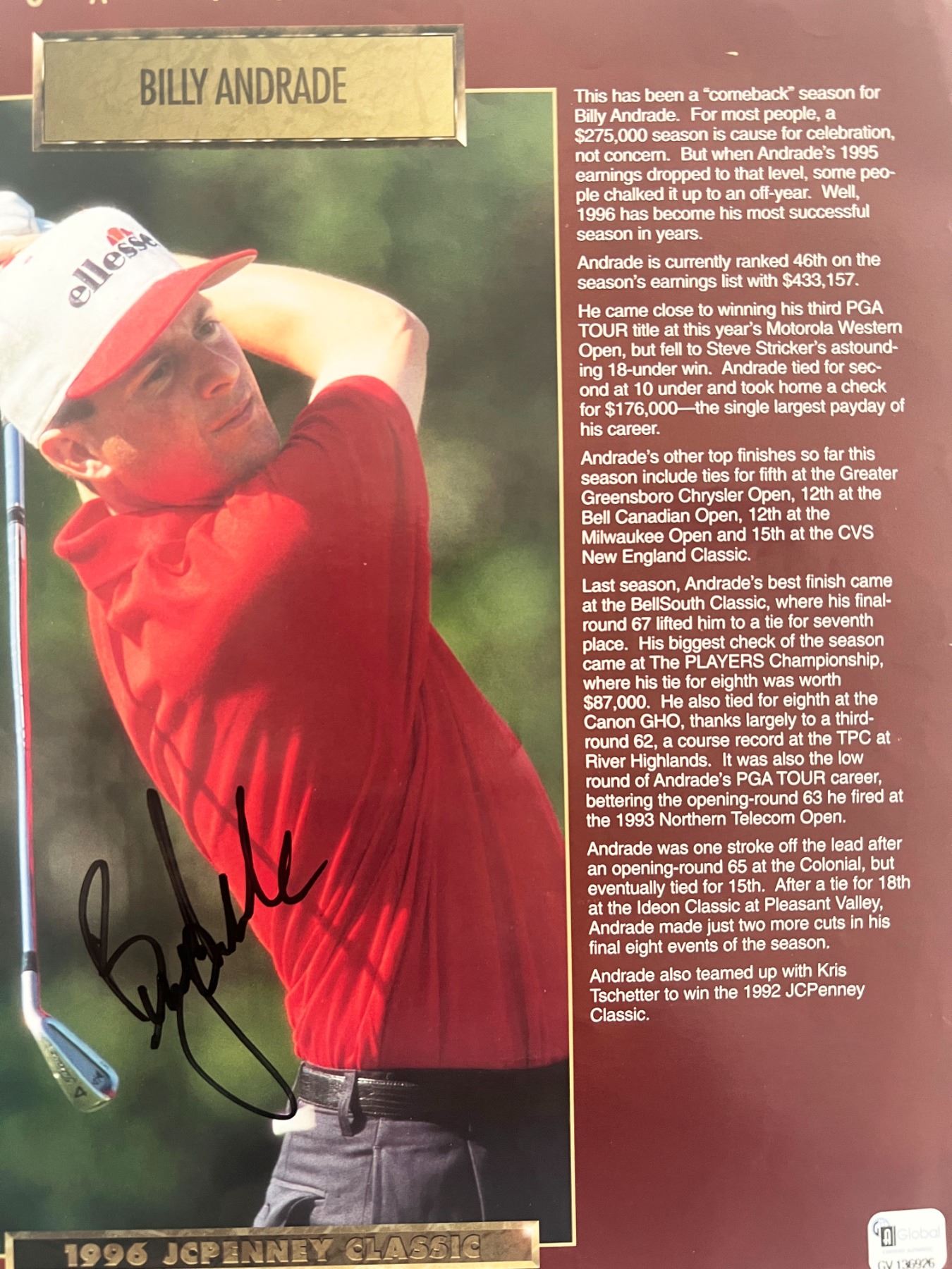 Billy Andrade signed 1996 JC Penney Classic LPGA profile. 9x11 inches. Global Authentication
