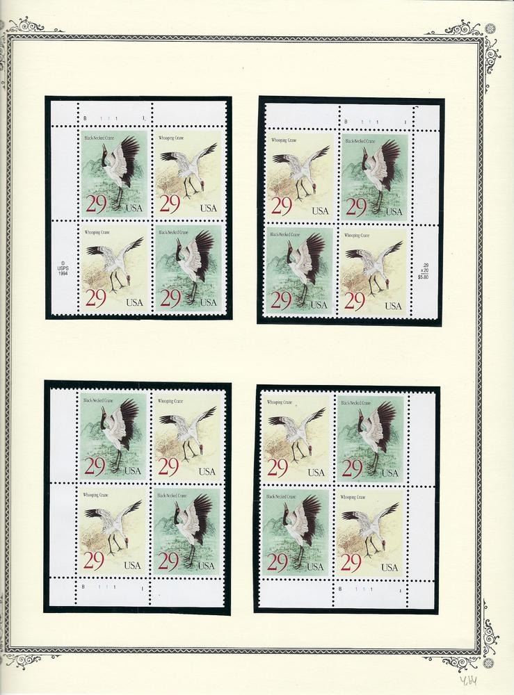 Bird stamps 4 plate blocks 16 x 29 cent stamps