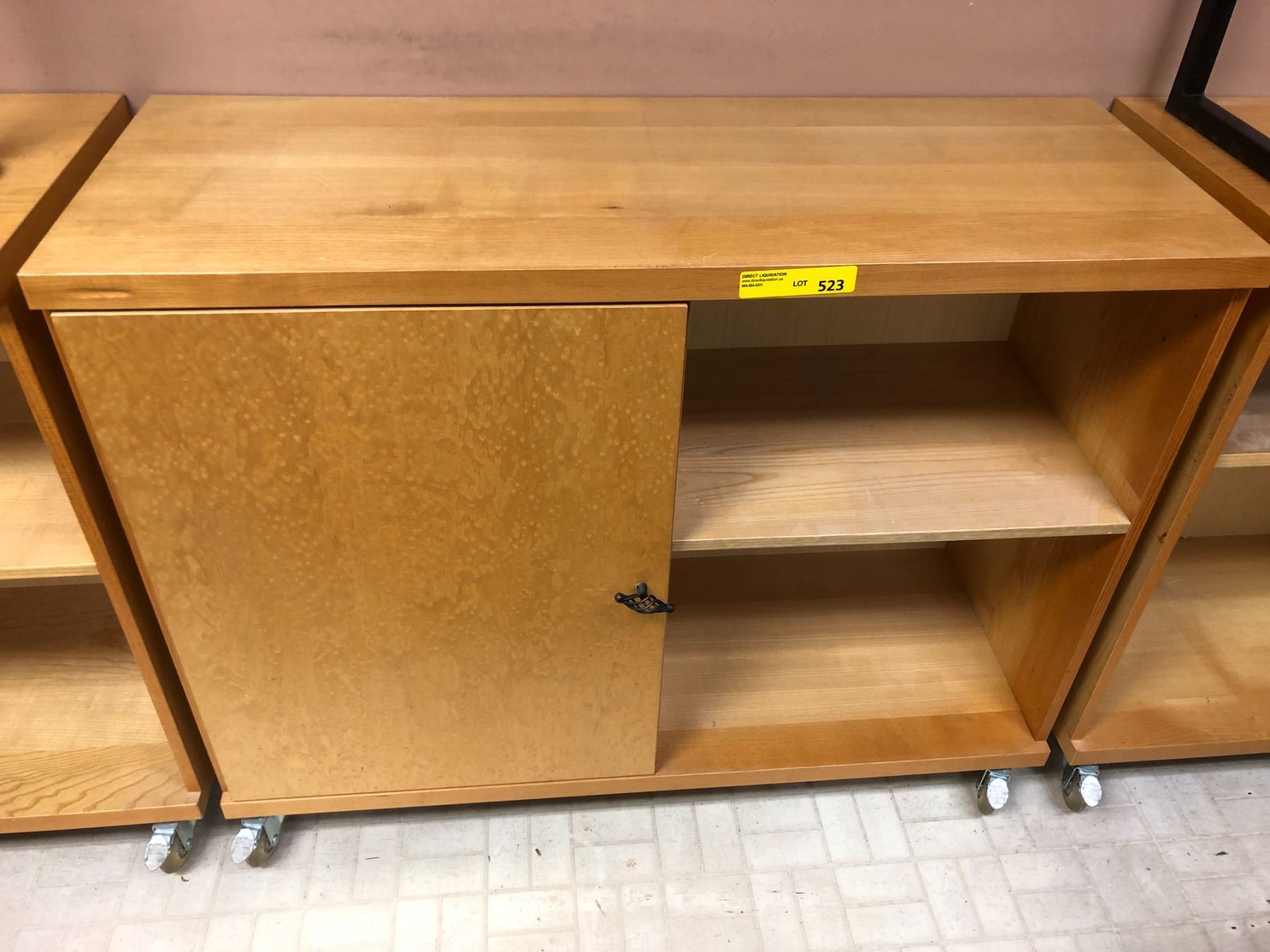 Birds Eye Natural Maple Veneer Rolling Shelving Unit with Cupboard