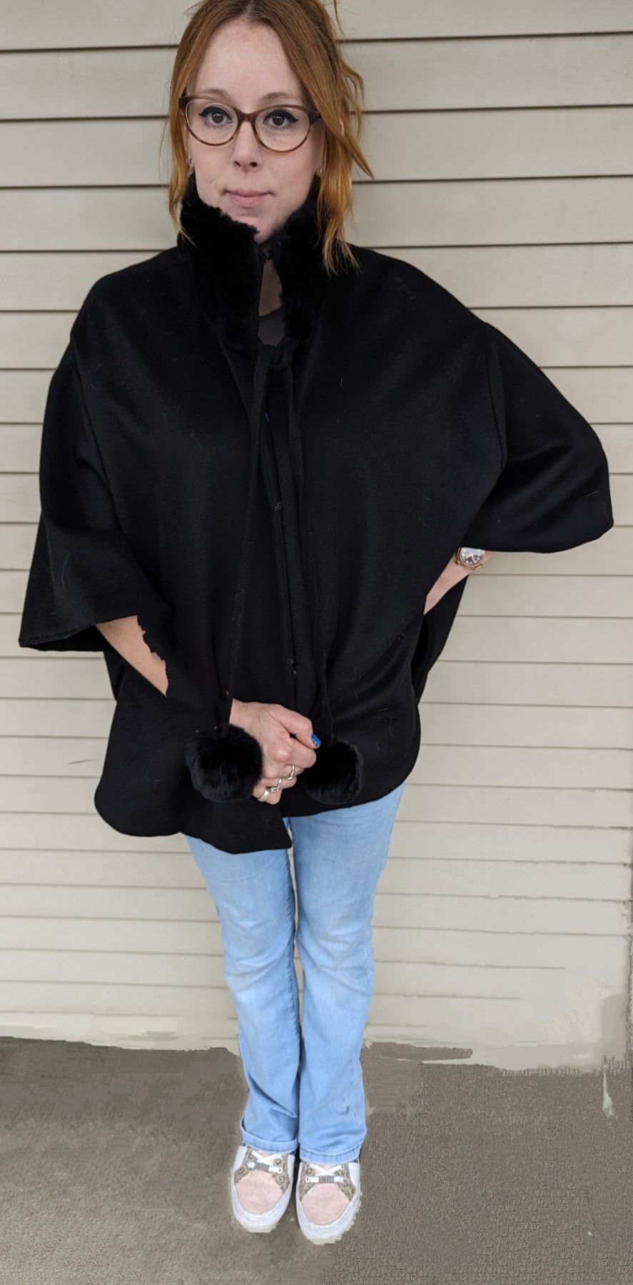 A special lady will look fabulous and stay warm in this Black Cashmere Blend Cape.