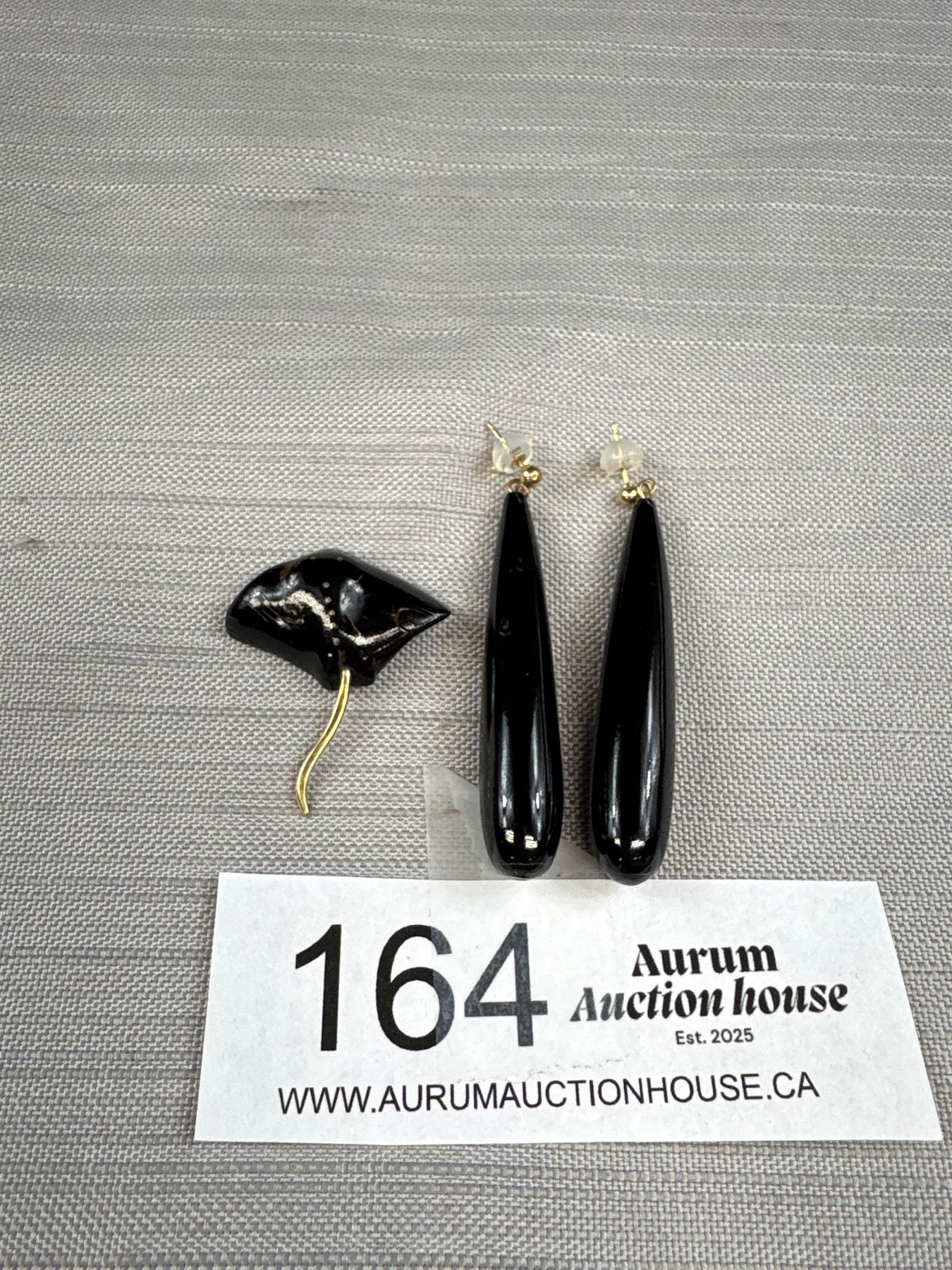 Black Coral Earrings w/ 14k Posts and Backings and Black Coral Stingray Pendant