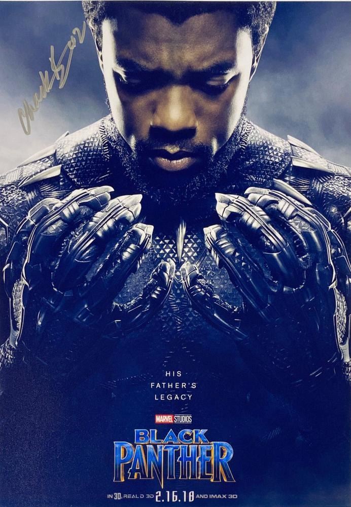 Black Panther Chadwick Boseman facsimile signed movie photo. 8x10 inches. This item is a reprint of an original autograph