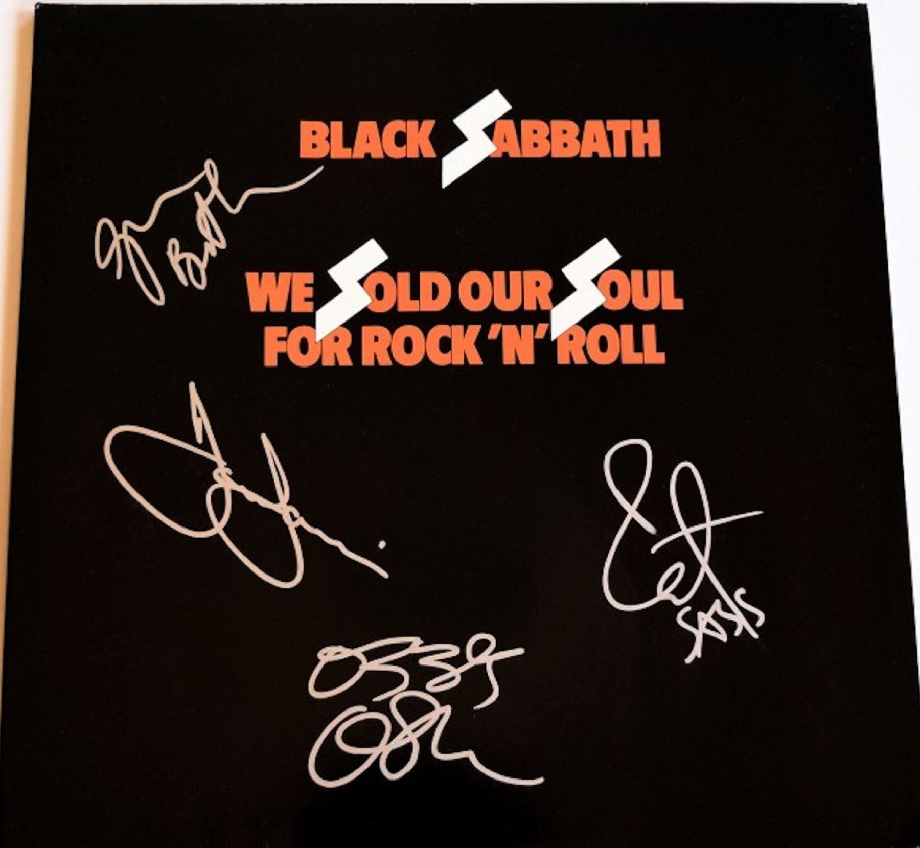 Black Sabbath signed We Sold Our Soul for Rock and Roll album autographed by Ozzy Osbourne, Tony Iommi, Geezer Butler and Bill Ward