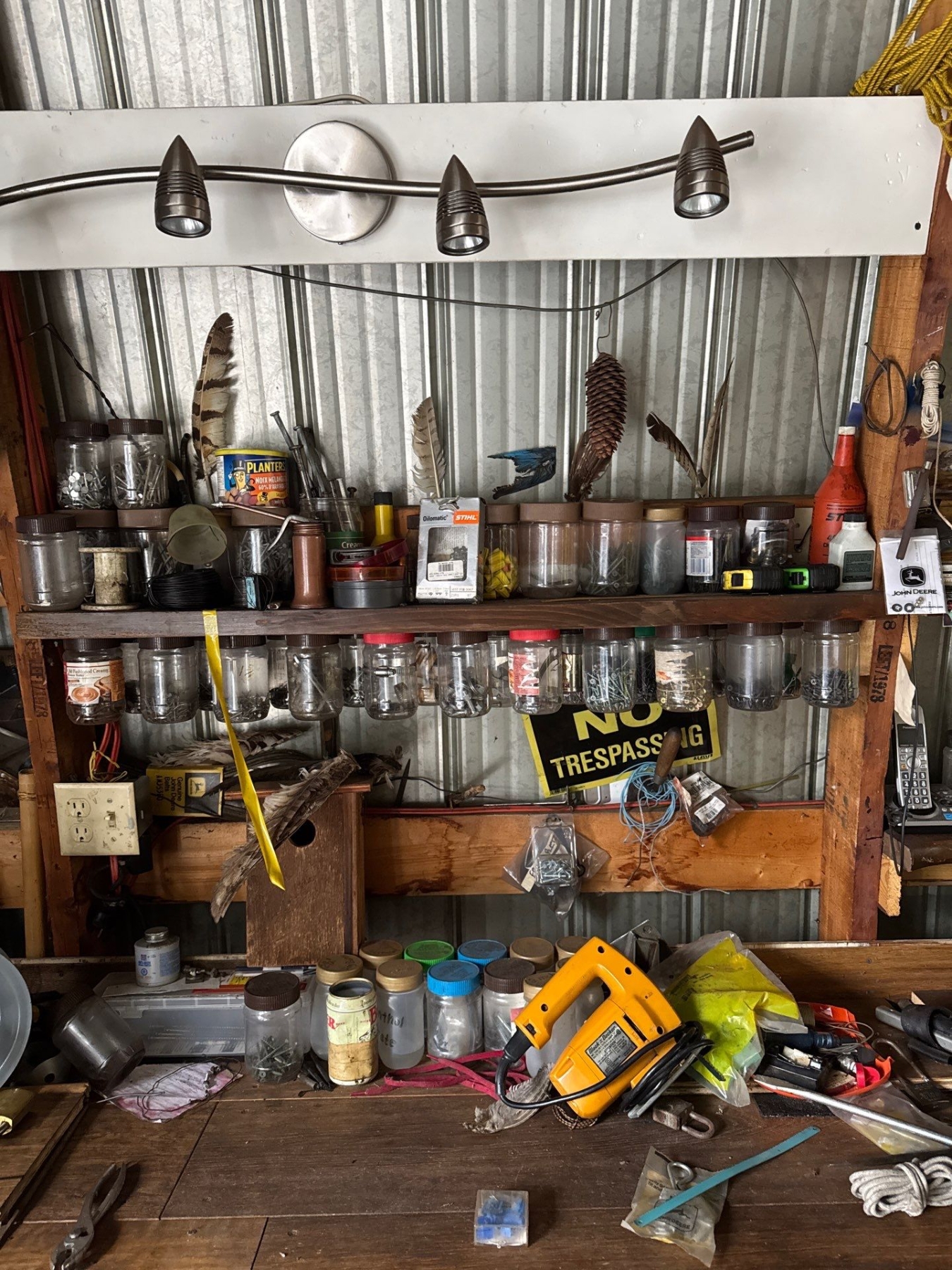 Blackened Decker. Jigsaw. Various screws, tools, all items on shelf included