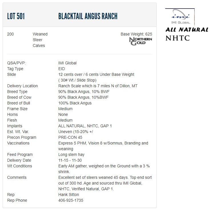 Blacktail Angus Ranch - 200 Weaned Steers; Base Weight: 625