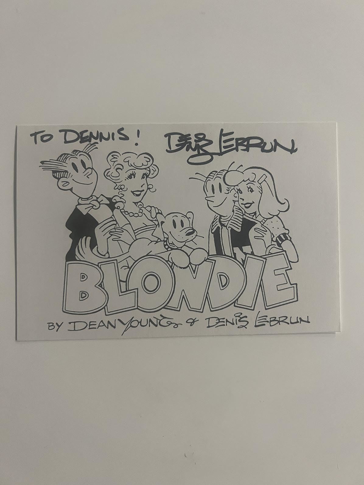 Blondie comic strip Dennis Lebrun signed card.5x4 inches
