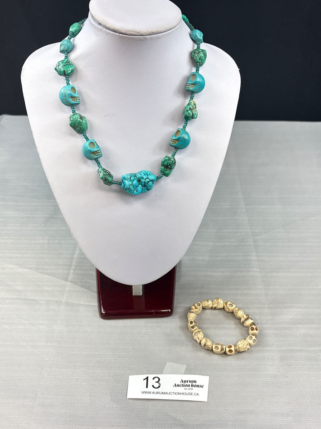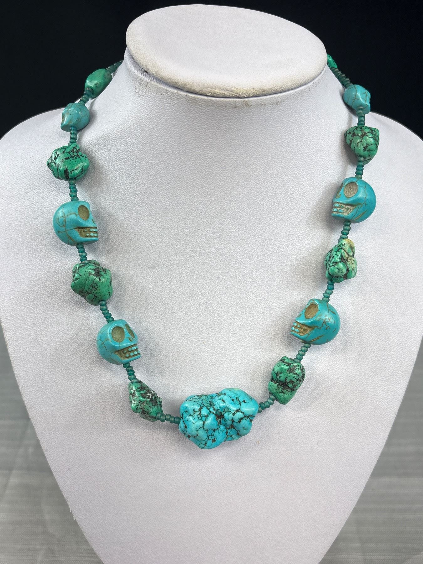 Blue & Green Skull Stone Necklace & Skull Bracelet