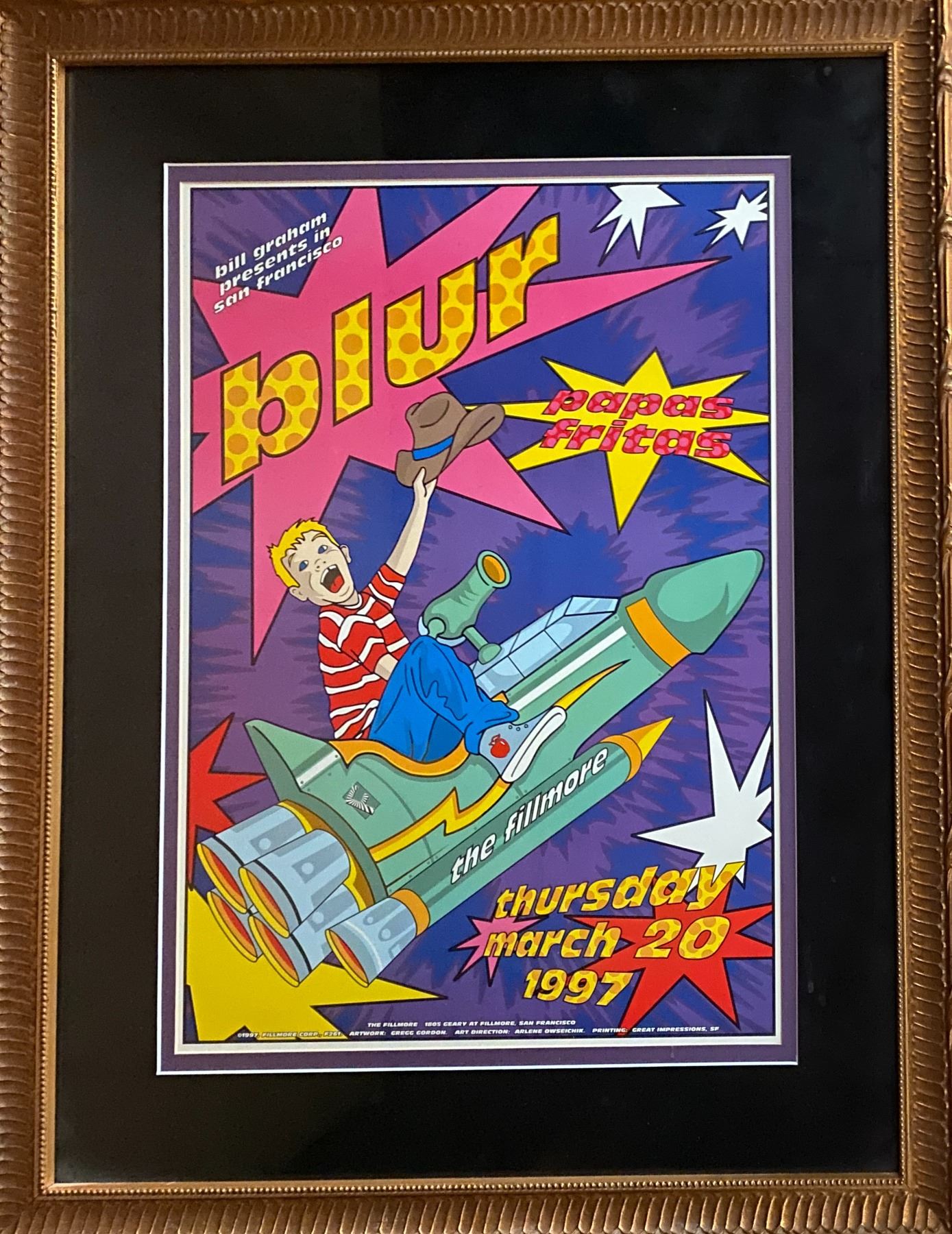Blur Fillmore concert March 20,1997 poster.Custom framed. 22x26 inches