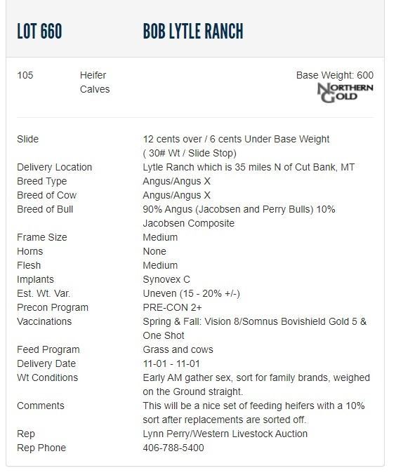 Bob Lytle Ranch - 105 Heifers; Base Weight: 600