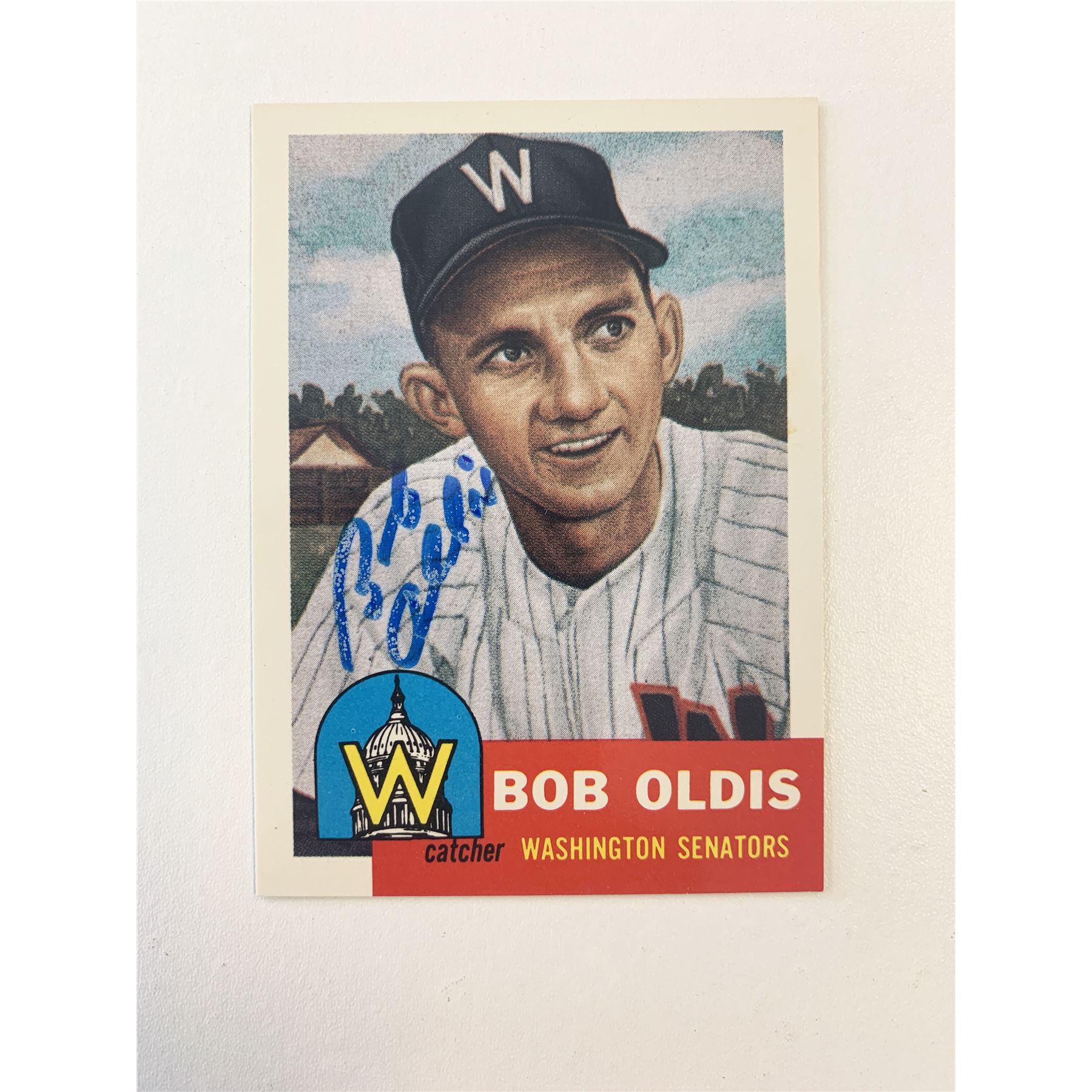 Bob Oldis signed baseball card. 2x3 inches. 1953 Topps