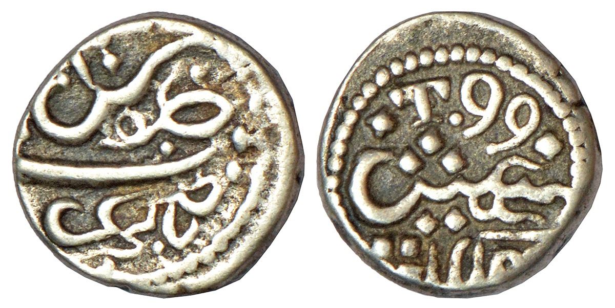 Bombay Presidency, Malabar Coast, silver 1/15 rupee, Telichery mint, T99, AH 1214, Stevens EIC 7.41, 1.76g.