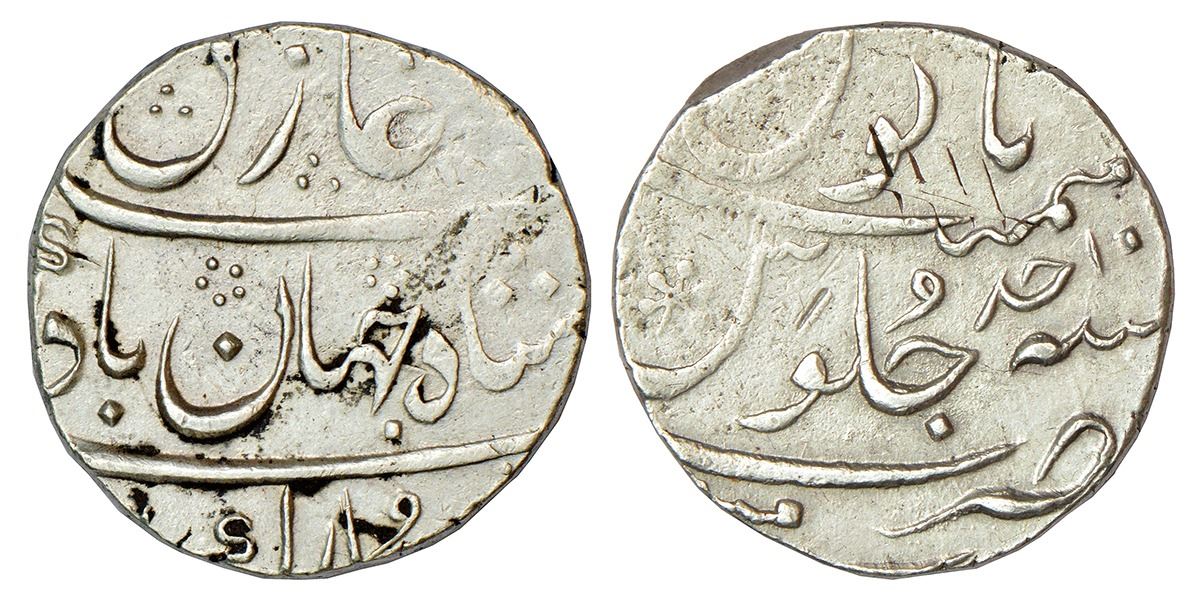 Bombay Presidency, Mumbai mint, silver rupee, in the name of Shah Jahan II (1719 AD), RY Ahd, Stevens EIC 2.9, 11.53g.