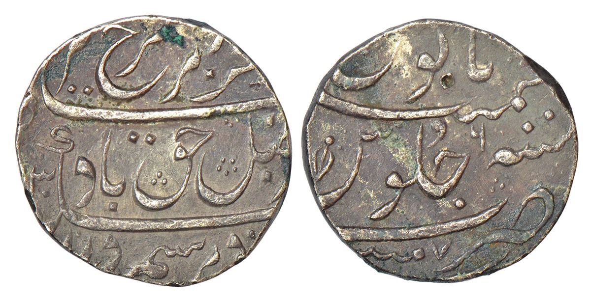 Bombay Presidency, Mumbai mint, silver rupee, in the name of Farrukhsiyar, AH (11)30, RY 6 near jalu