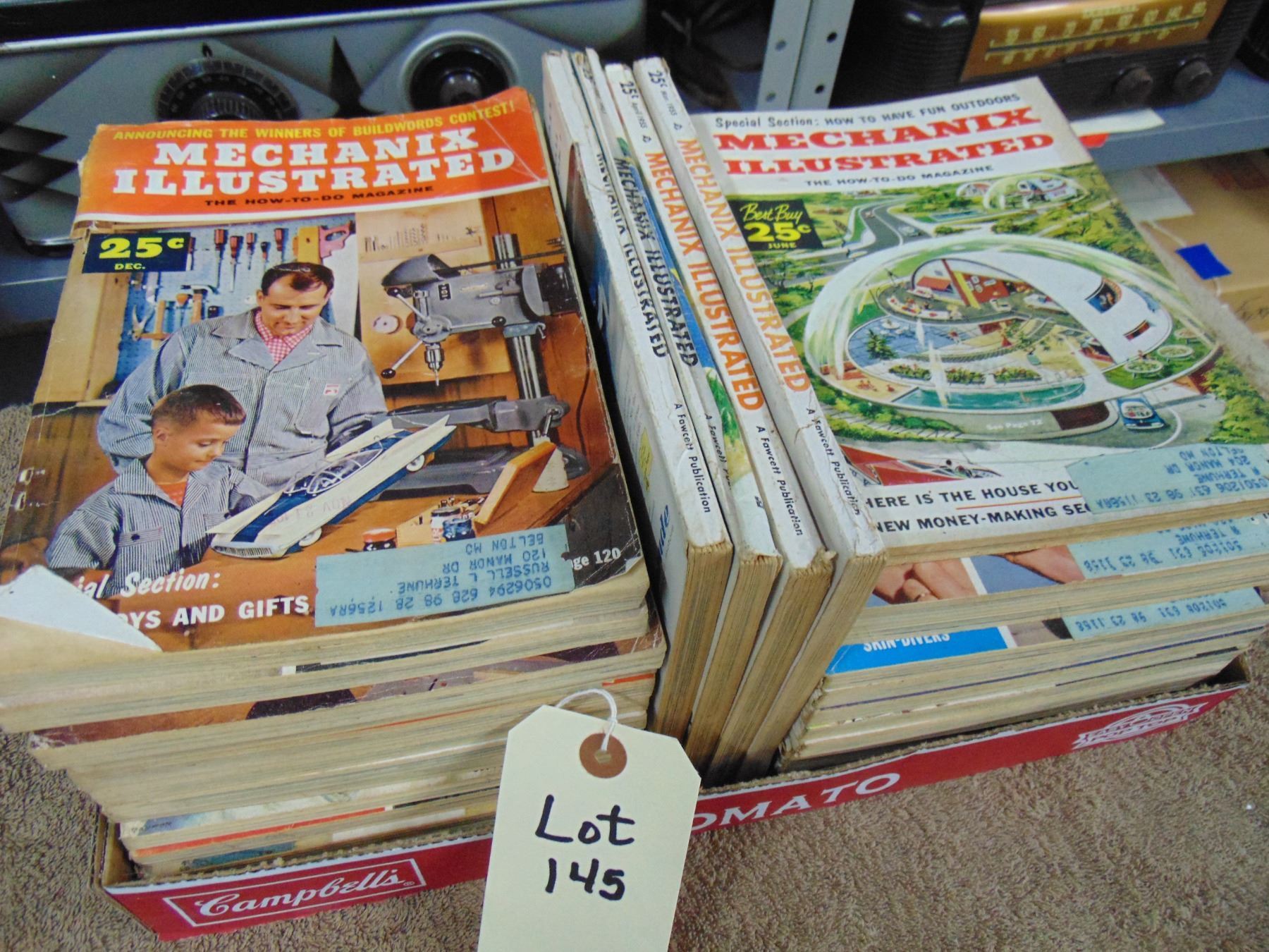 Flat of mostly 1950's Mechanics Illustrated magazines; mostly good covers