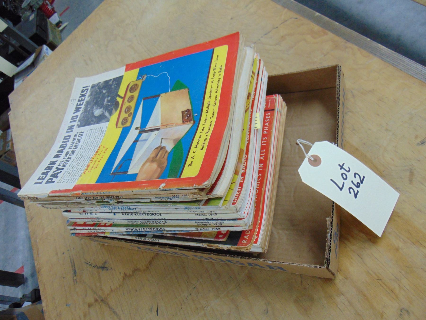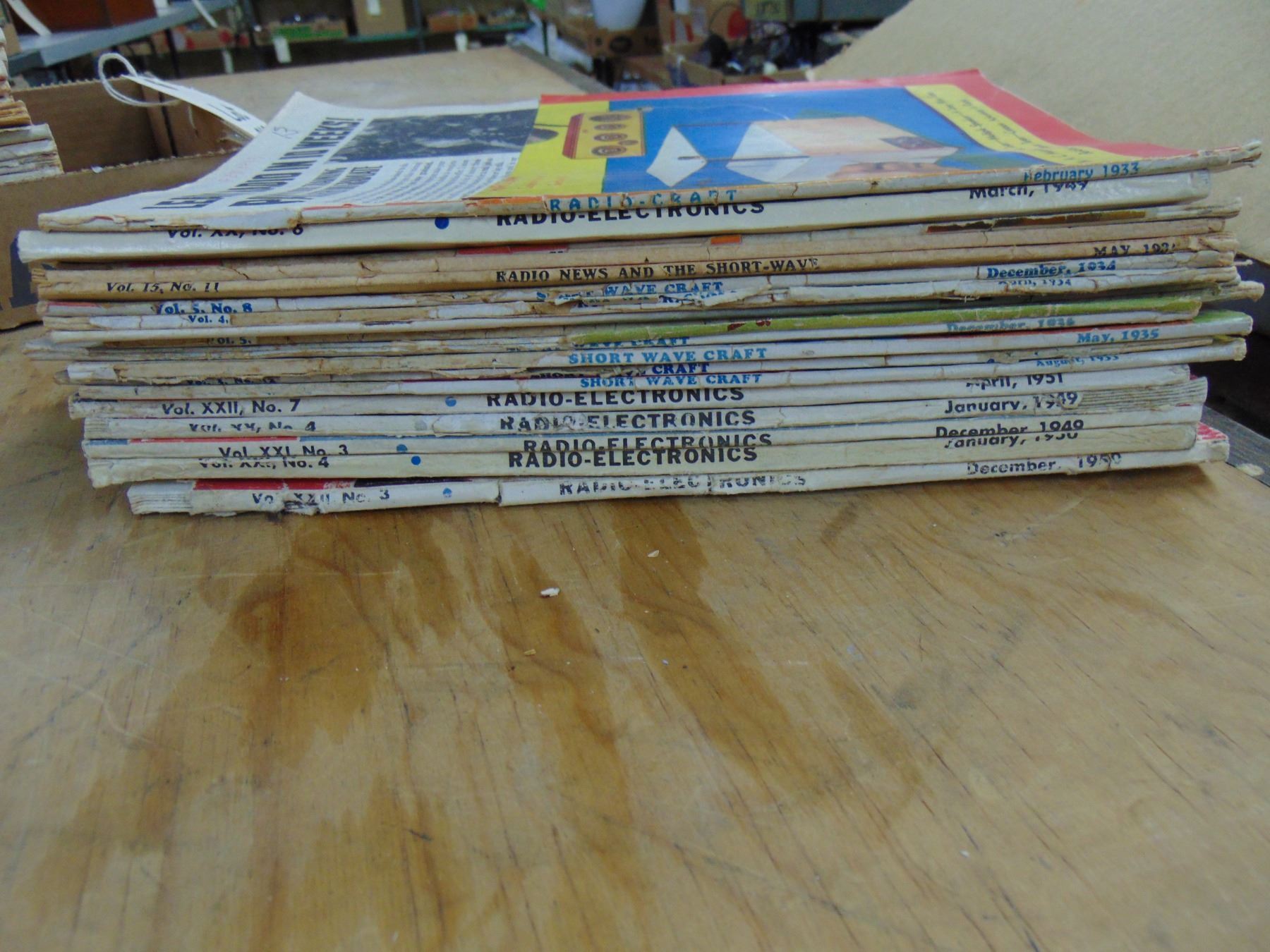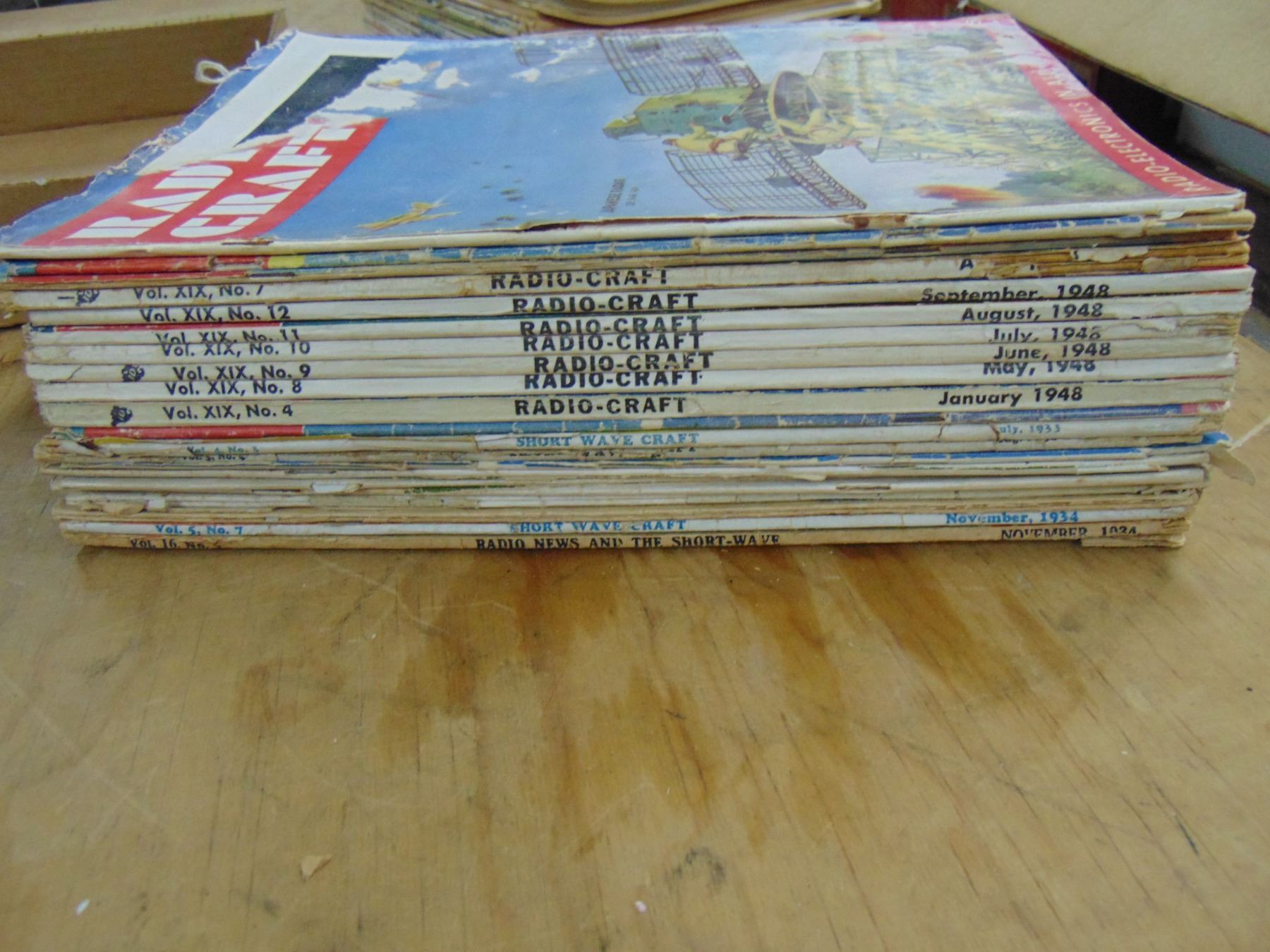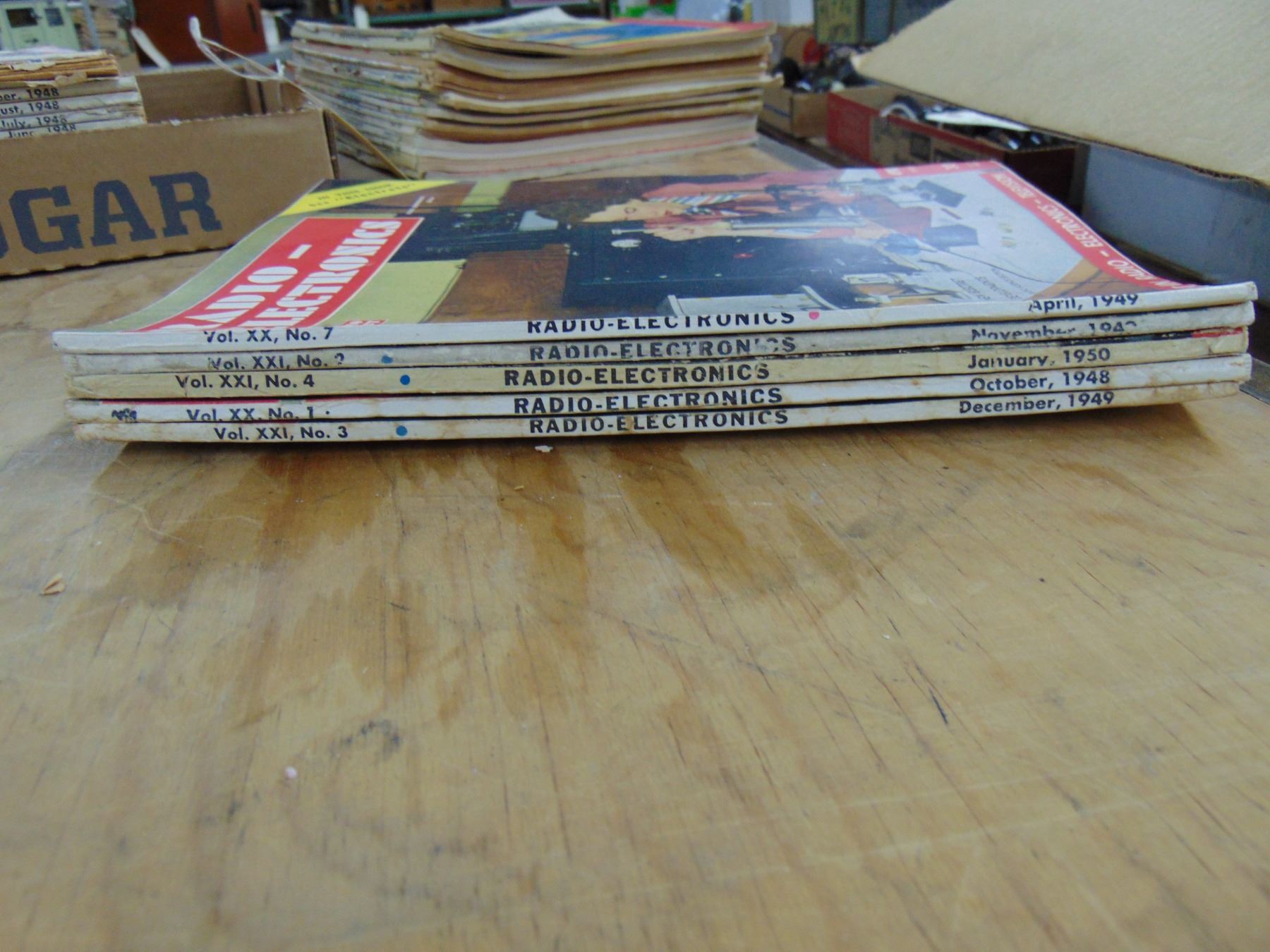 Flat of many electronic magazines; 1940's and 50's vintage; includes Radio Electronics, Radio Craft; most good covers