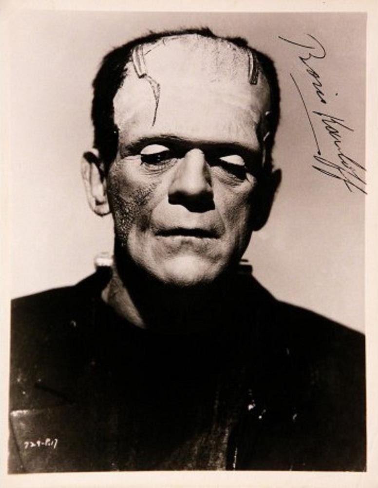 portrait photo from "House of Frankenstein" autographed by Boris Karloff. 8x10 inches. This item is a reprint of an original autograph