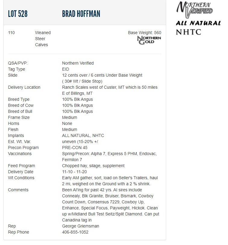 Brad Hoffman - 110 Weaned Steers; Base Weight: 560