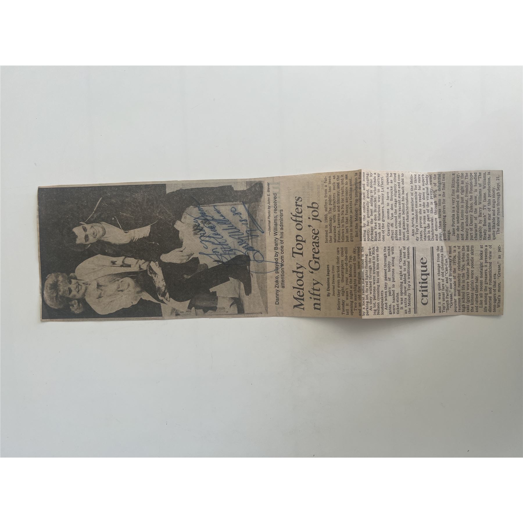 Melody Top Grease Barry Williams signed newspaper clipping. 5x11 inches