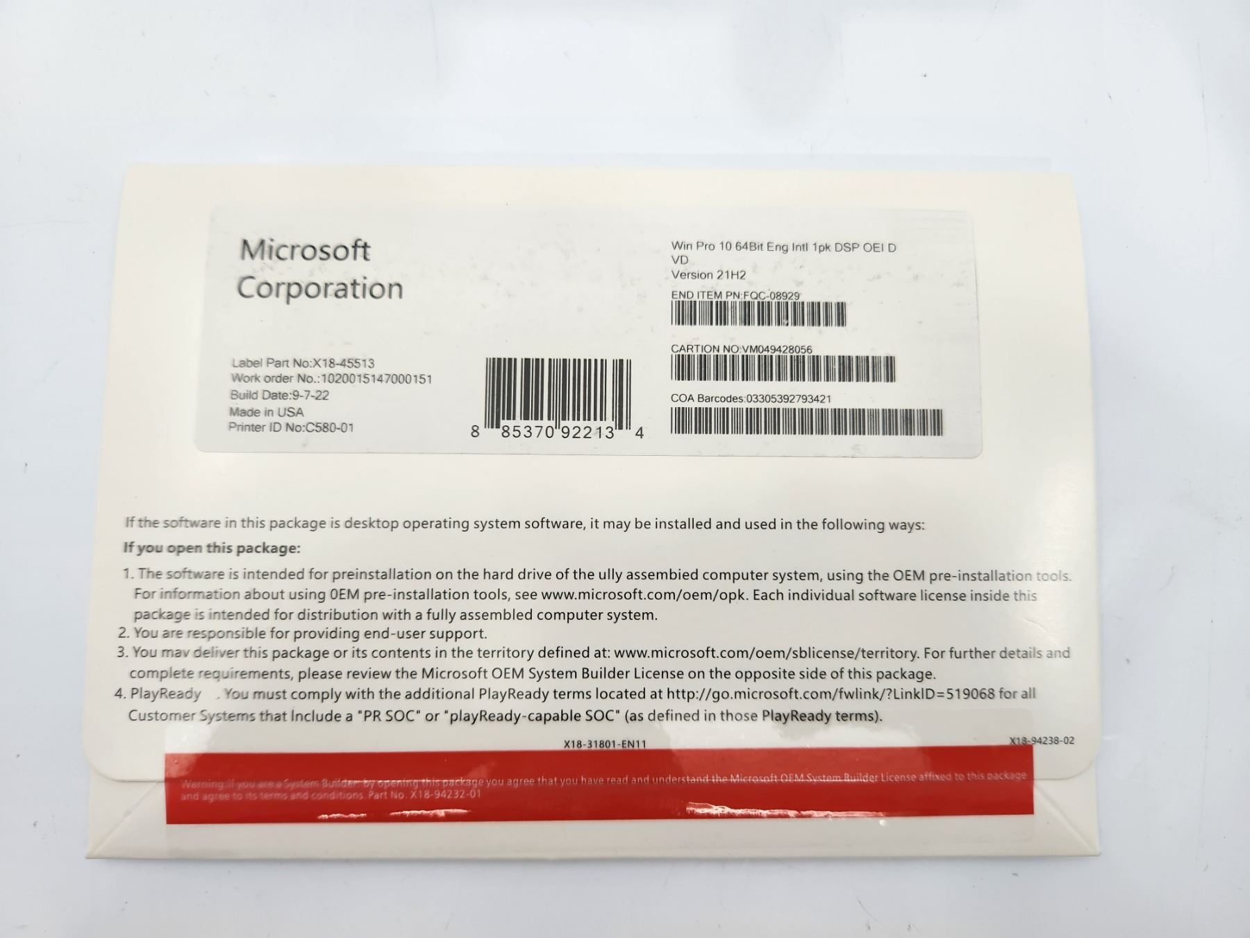 Brand New Windows 10 Pro Software DVD and License