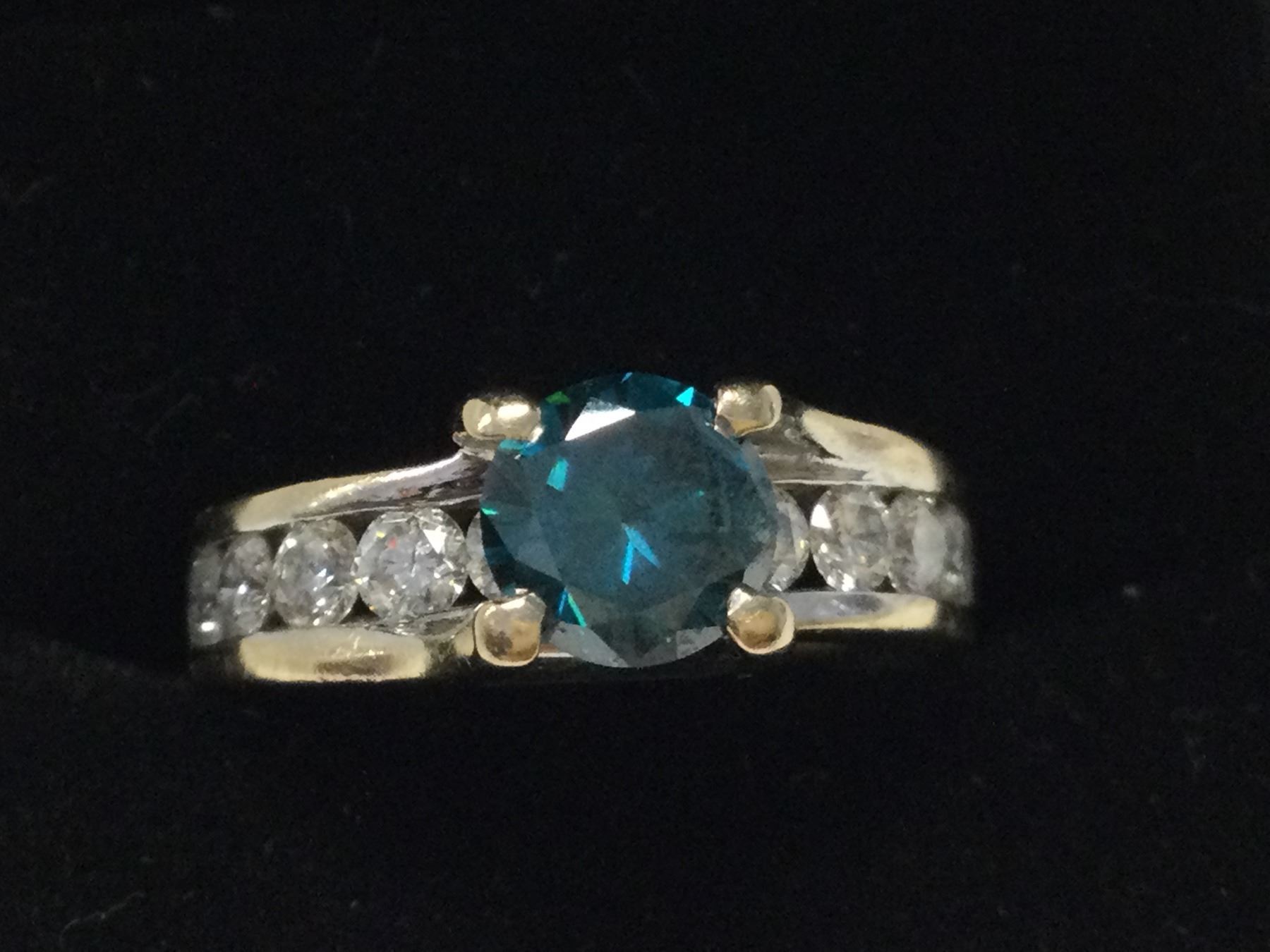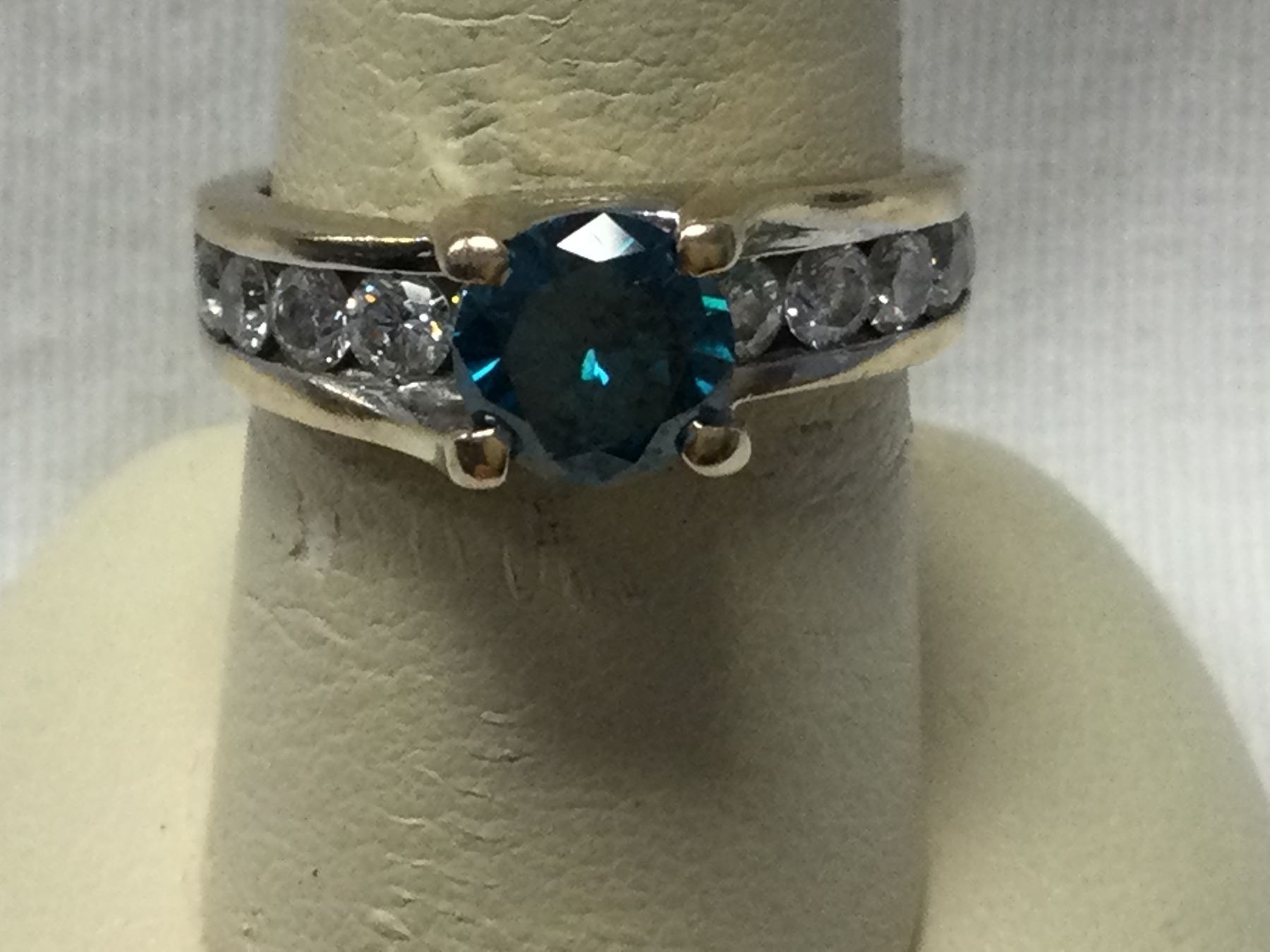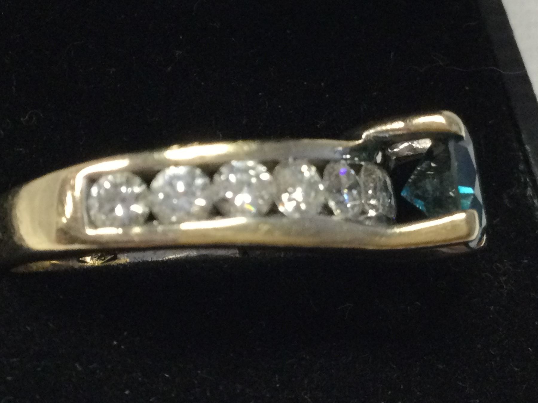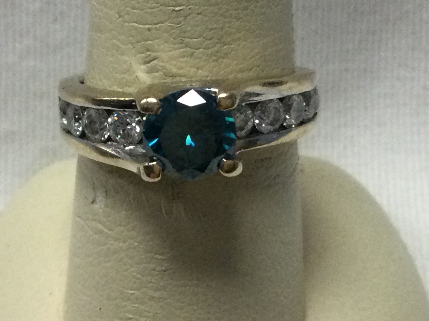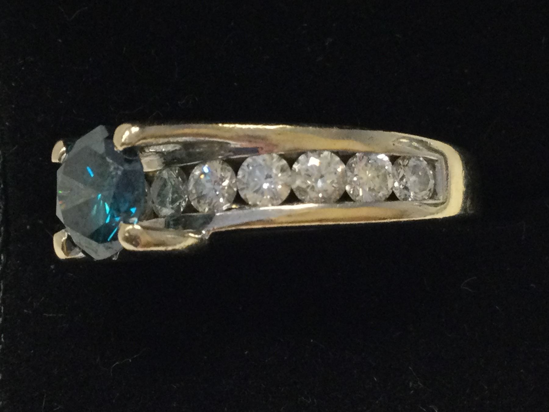 You are bidding on a breathtaking, genuine 18kt Gold ring, featuring a genuine 1.5ct Blue Diamond, accented by 1ct of smaller genuine matching diamonds, A real showpiece