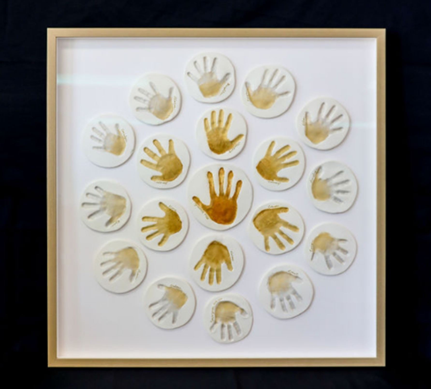 Small hands are precious! Our youngest class at St. Joe’s, the class of 2028, shares their brilliance and kindness with us every day. They have much to contribute to the school and our world. We showcased these "hands of the future" surrounding their teacher’s hand to demonstrate learning from one another and supporting each other during their journey at St. Joe’s. We used light-weight model magic clay and acrylic paint in a bright yellow ombre scheme. We hope you cherish these hands and all the wonder they represent!