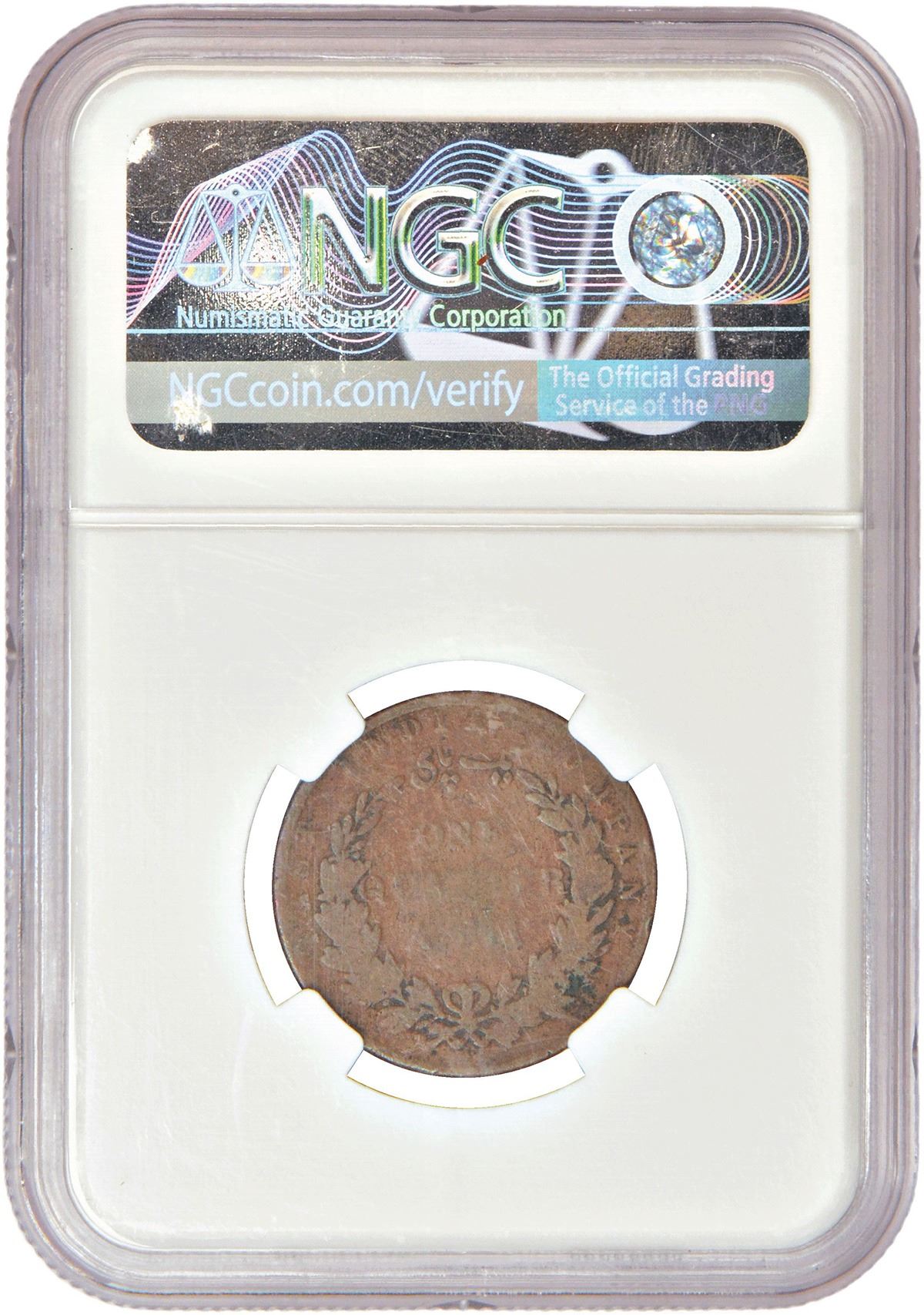 British India: East India Company, copper ¼ anna, error, ND (1857-1858), Birmingham mint, single leaf, reverse part brockage (Lakhi) on obverse.