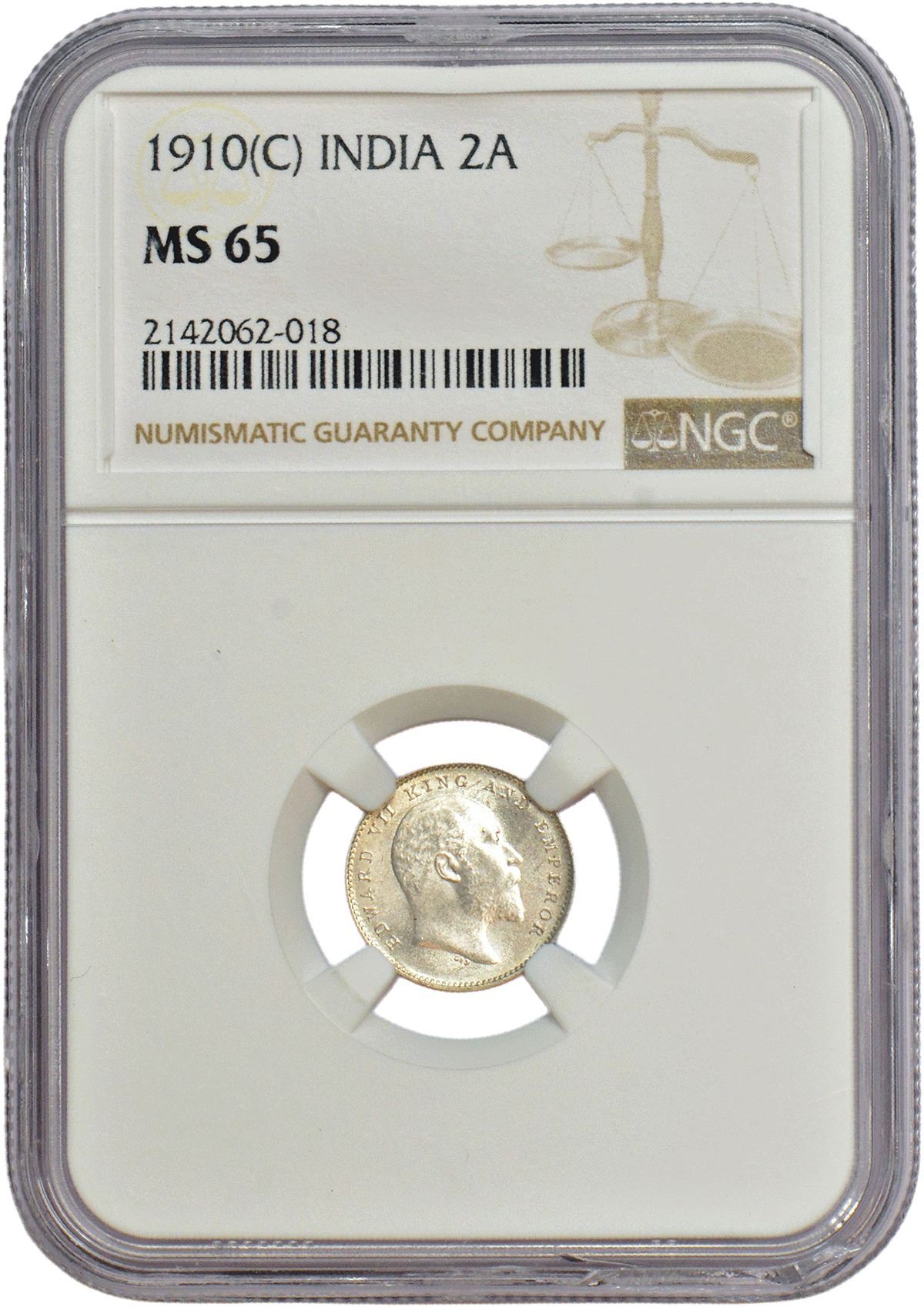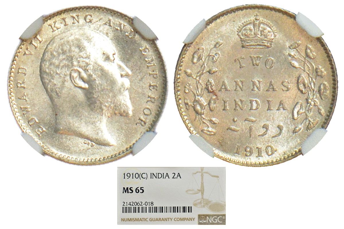British India: Edward VII, silver 2 annas, 1910, Calcutta mint, no mm, PR 563; GK 987.