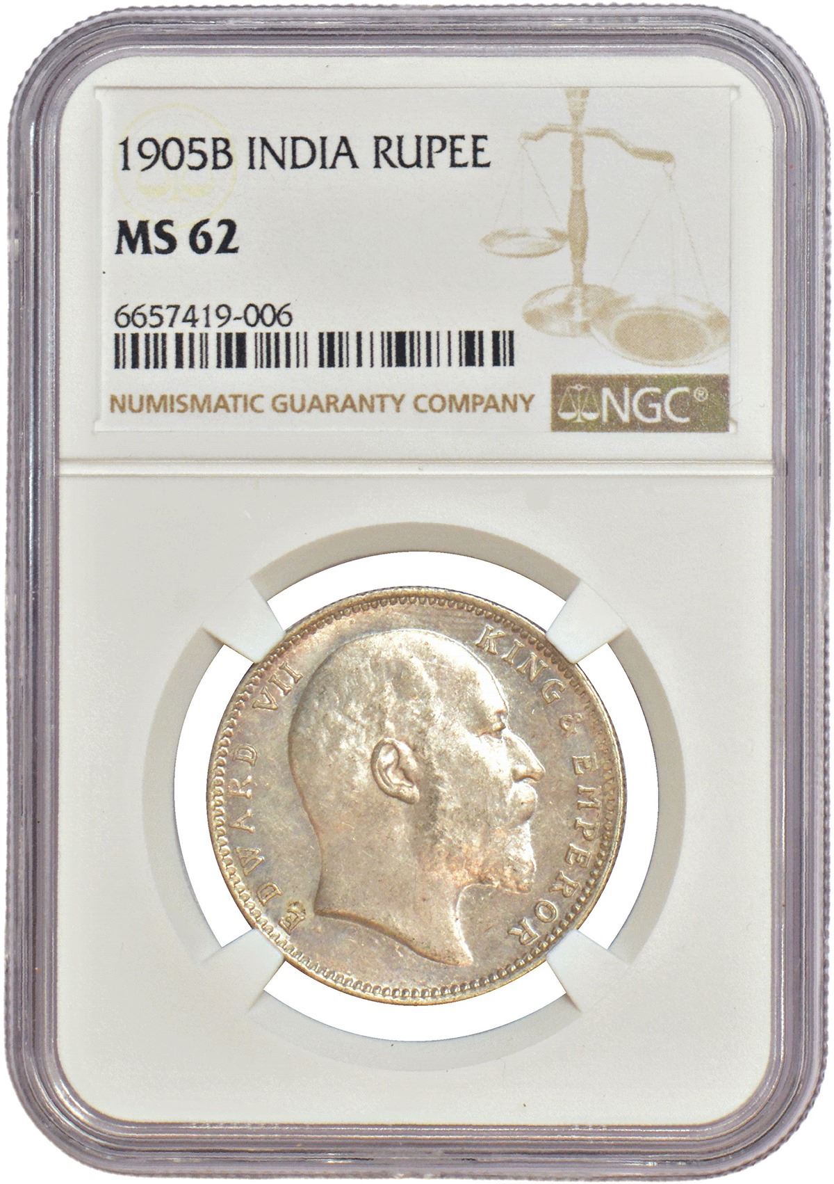 British India: Edward VII, silver rupee, 1905, Bombay mint, 'B' incused and dot, PR 201; GK 935-936.