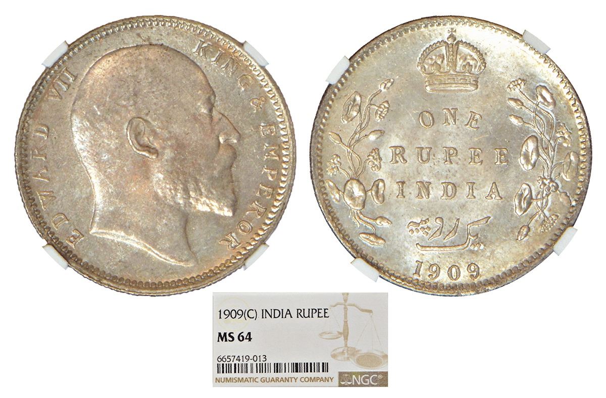 British India: Edward VII, silver rupee, 1909, Calcutta mint, no mint mark, PR 195; GK 950.