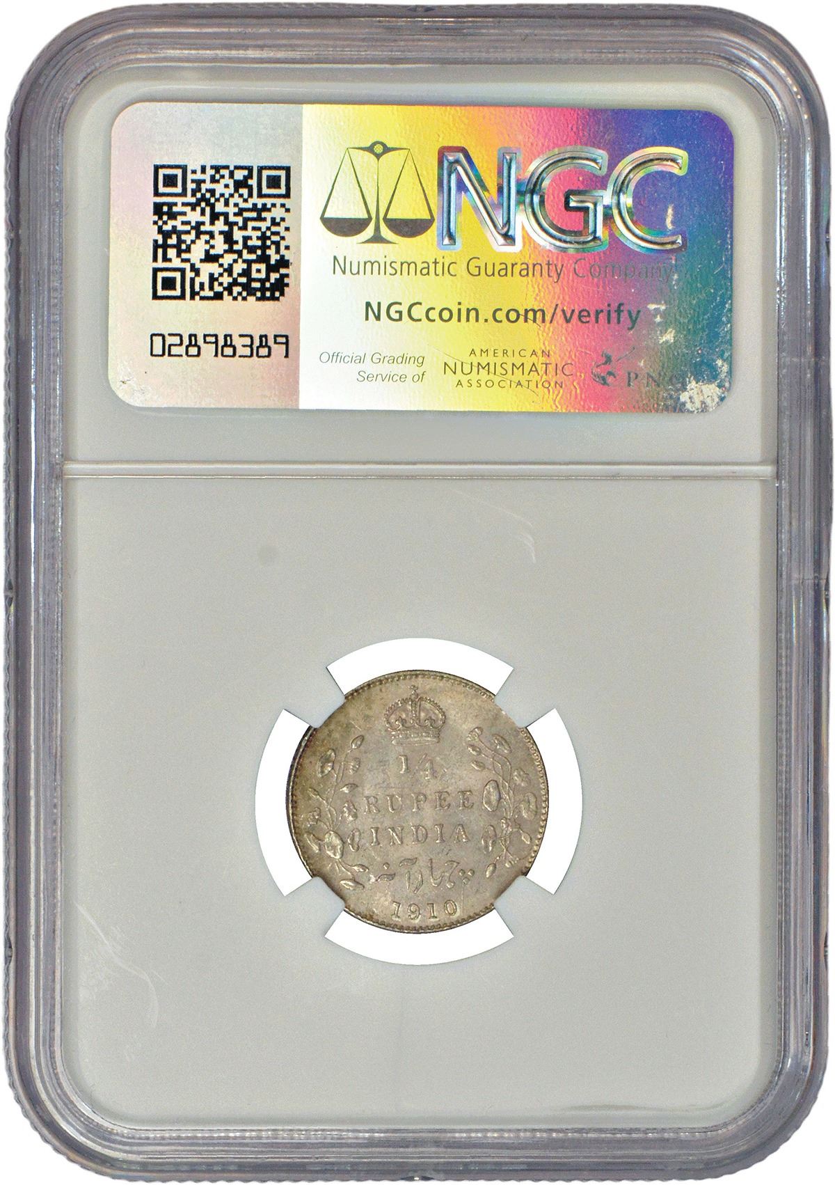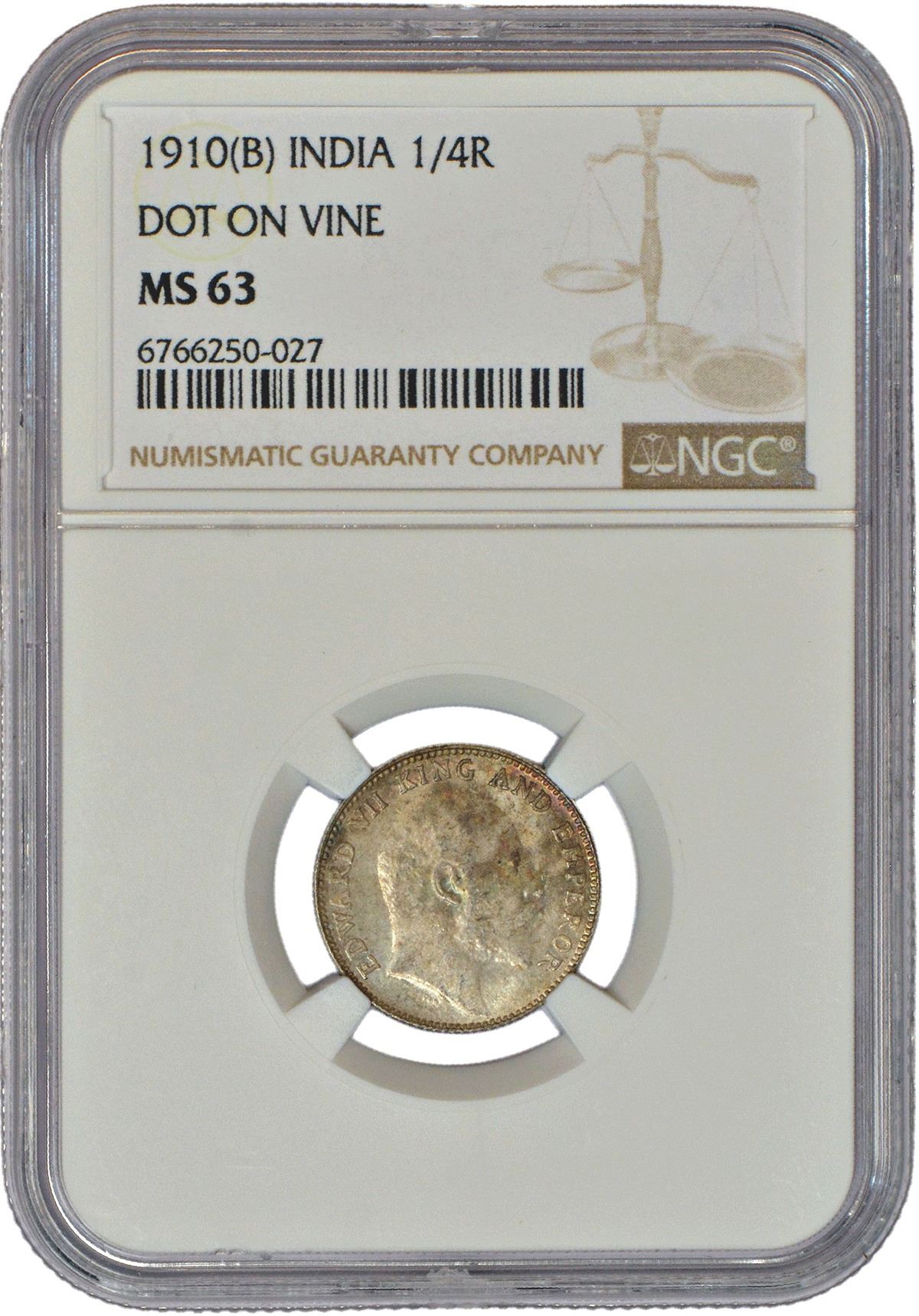 Edward VII, silver ¼ rupee, 1910, Bombay mint, dot on vine/stem, unlisted in PR; GK 979.
