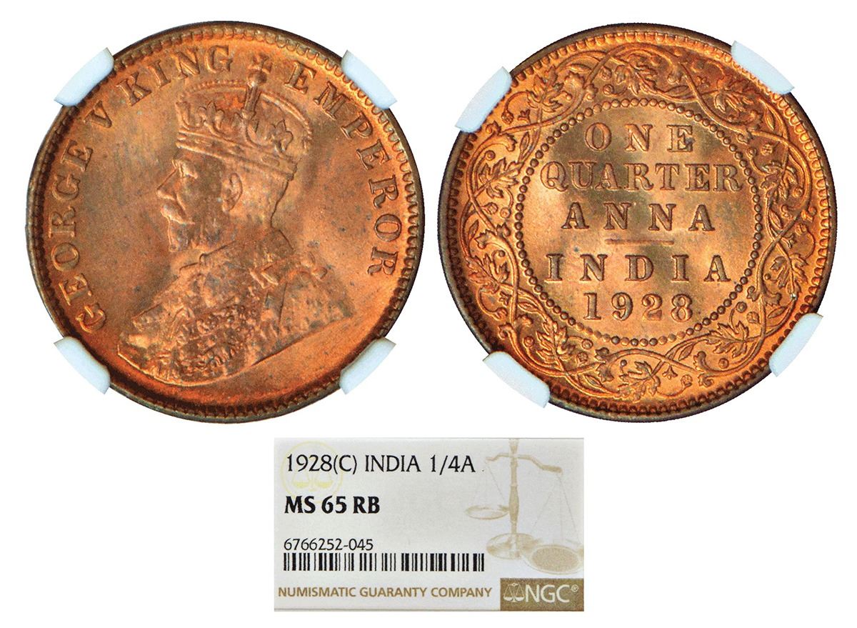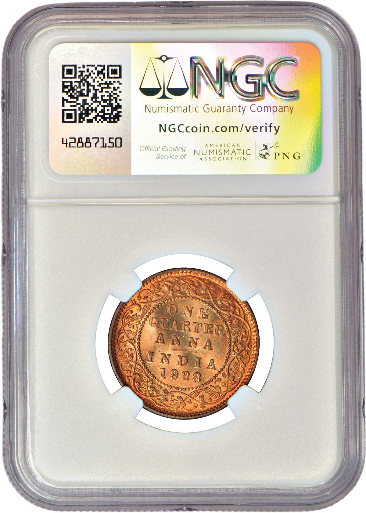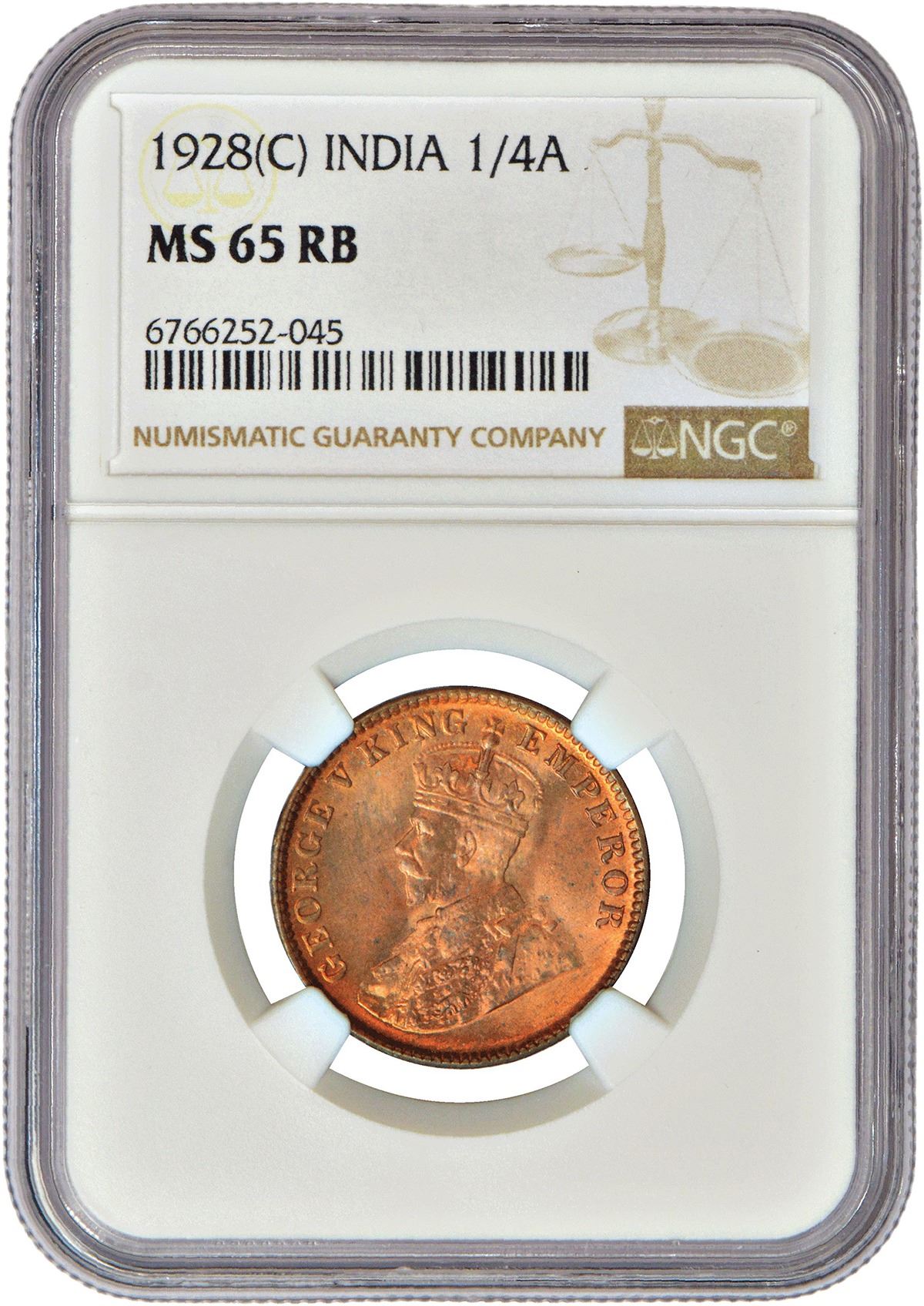 British India: George V, bronze ¼ anna, 1928, Calcutta mint, no dot, PR 669; GK 1188.