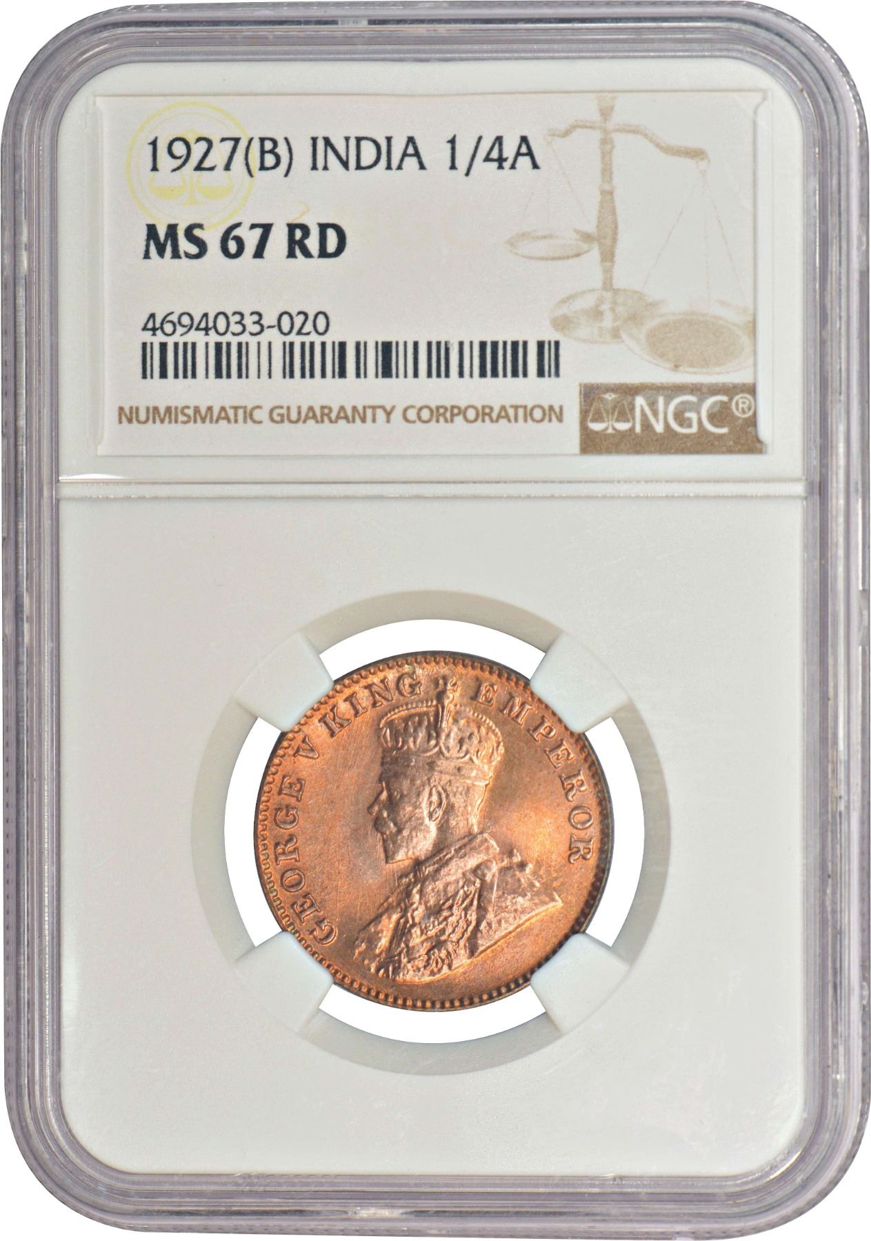 George V, copper ¼ anna, 1927, Bombay mint, with dot, PR 680; GK 1185.
