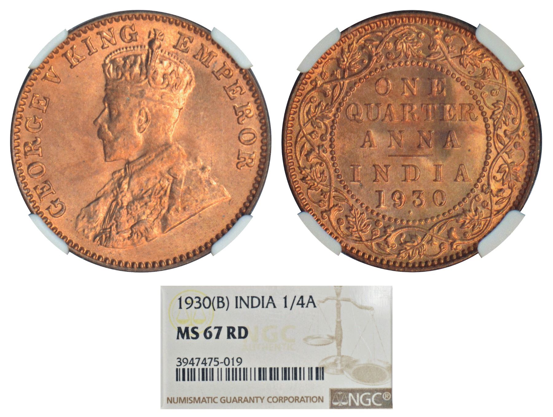 George V, copper ¼ anna, 1930, Bombay mint, with dot, PR 682; GK 1190.